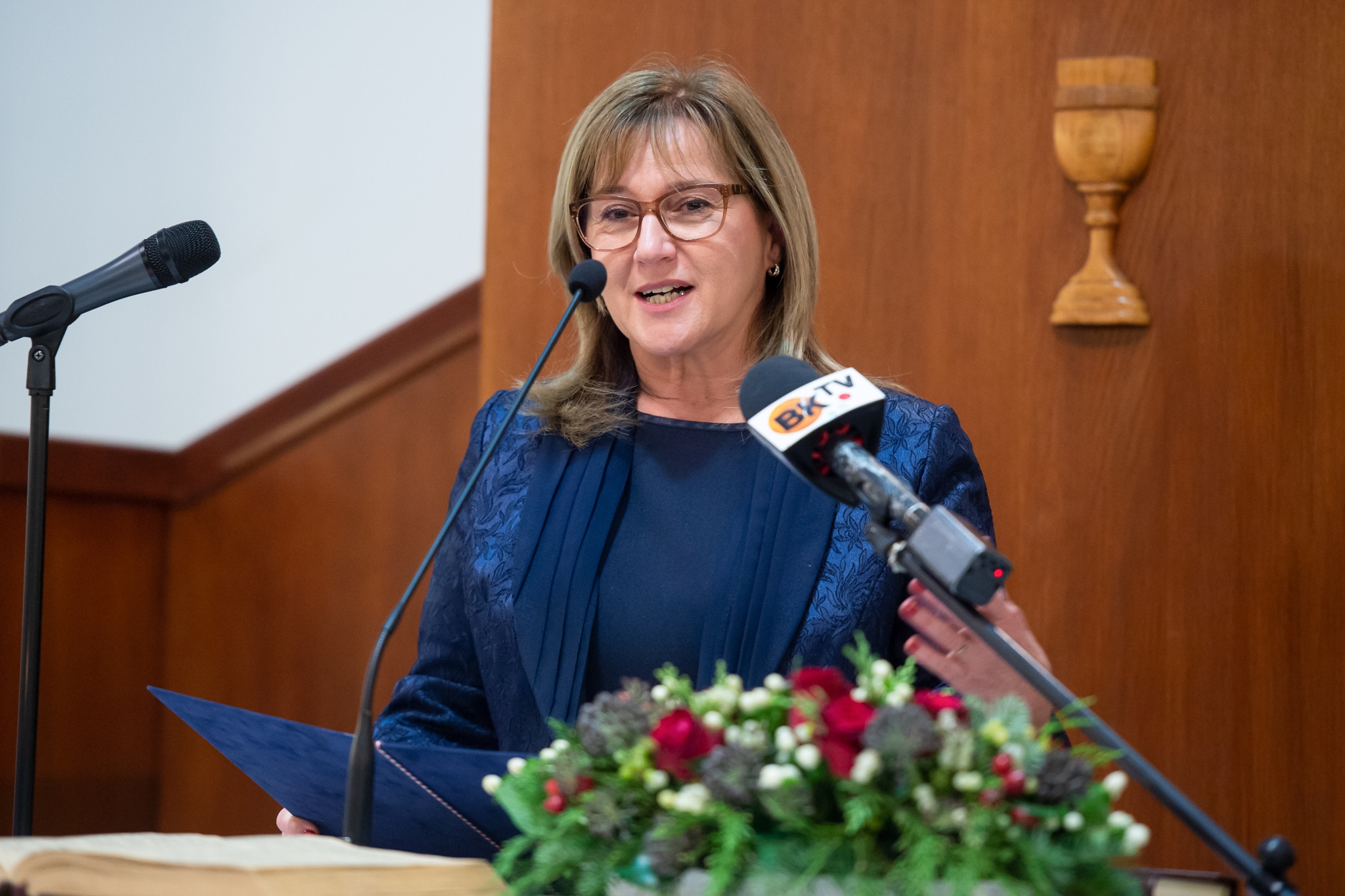 Kiszelné Mohos Katalin polgármester a település köszöntését tolmácsolta. Utalva a tizenegy éve felszentelt református templomra – amelynek építési telkét az önkormányzat biztosította –, kifejezte a gyülekezet iránti további segítőkészségét és a hosszútávú, szeretetteljes együtt munkálkodás reményét.