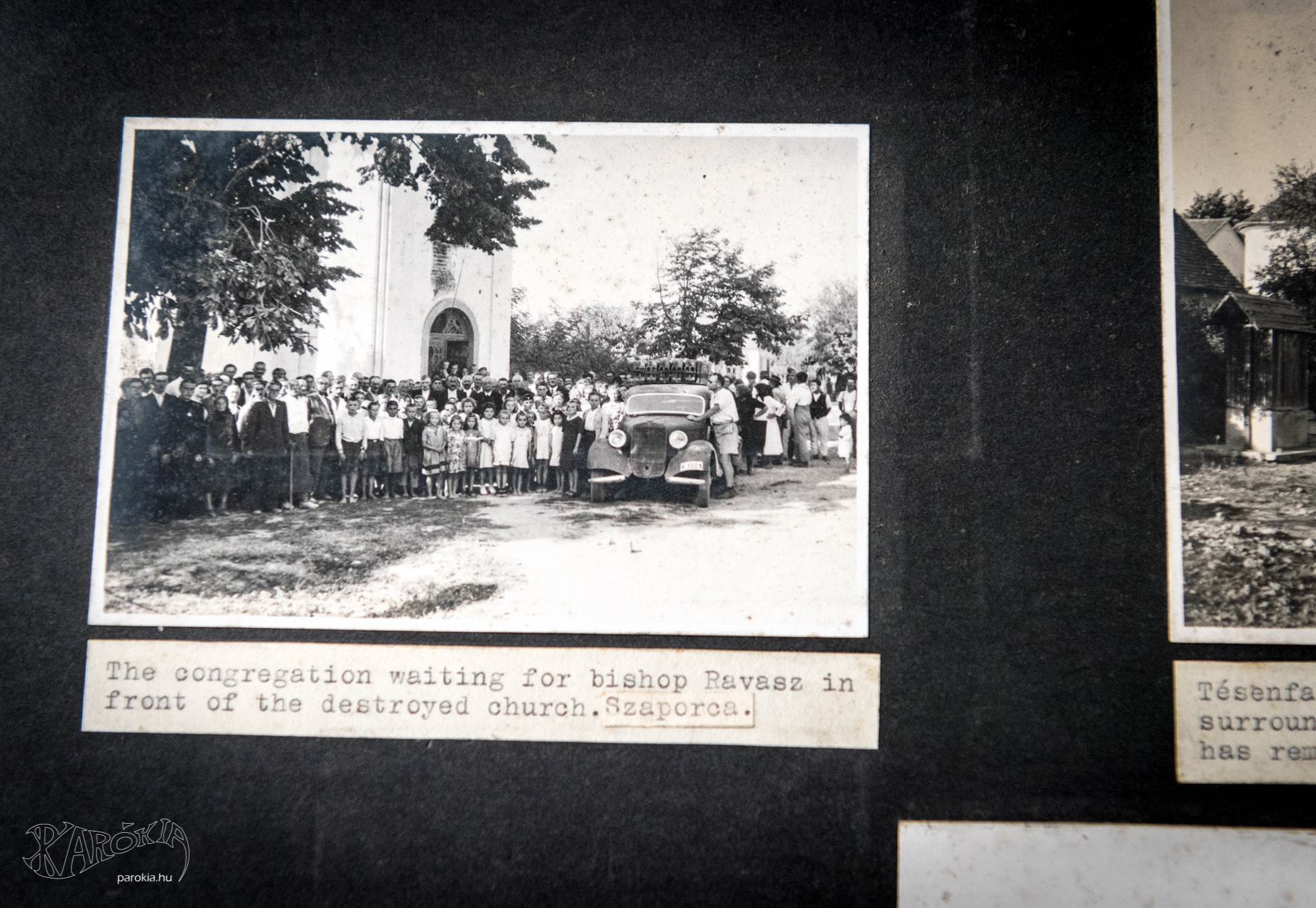 A képeken szereplő, név szerint is említett személyek között látható Pap László, a budapesti református teológia akkori dékánja, valamint Ravasz László püspök. Az egyik kép a vértesaljai Csabdi romos templomában készült 1946-ban, a püspök igehirdetése közben. A szaporcai templom előtt készült felvételen az autója is látható. „Az egyik kép alatt egy presbiter panaszkodik arról, hogy női ruhában kellett jönnie az összejövetelre, mert egyszerűen nem volt ruhájuk 1947 tájékán. Egy másik, sárkeresztesi presbiter azt mondja: nem anyagi segítségre volna szükségük, csak egy-két év békére, hogy újjáépíthessék gyülekezeti otthonukat. Ebben kéri a nyugat-európaiak segítségét.”