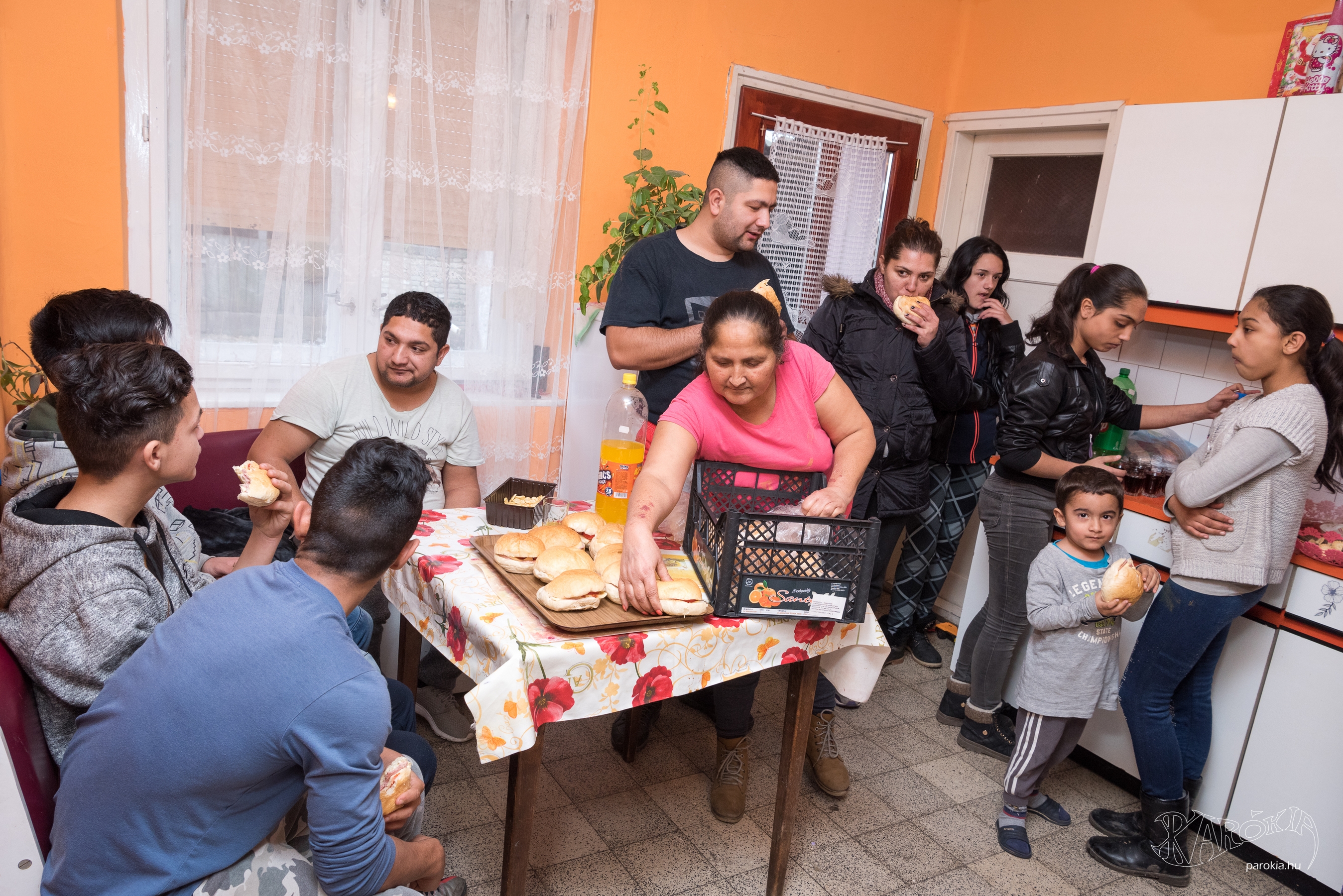 Az a Jézus, aki a felolvasott történet szerint a megvetett Lévi asztalához telepedett, tiszteletét fejezte ki vendéglátójánál, amit a cigányok nagyra értékelnek. Így teszünk mi is hamarosan, amikor a Kun család konyhájában uzsonnára gyűlünk össze. De csak miután elmondtuk a Miatyánkot, kézen fogva. Az egymásba kulcsolódó kezek a közösség megtartó erejéről prédikálnak, és csakhamar kiderül: ezért lehetünk ma itt mindannyian. Vendéglátóink hálából ajánlották fel otthonukat a közösségnek, hogy tartsák itt a szokásos, vasárnapi istentiszteletet. Nemrég még darabokban volt a családi életük, de az elmúlt néhány hónapban gyökeres változás kezdődött.