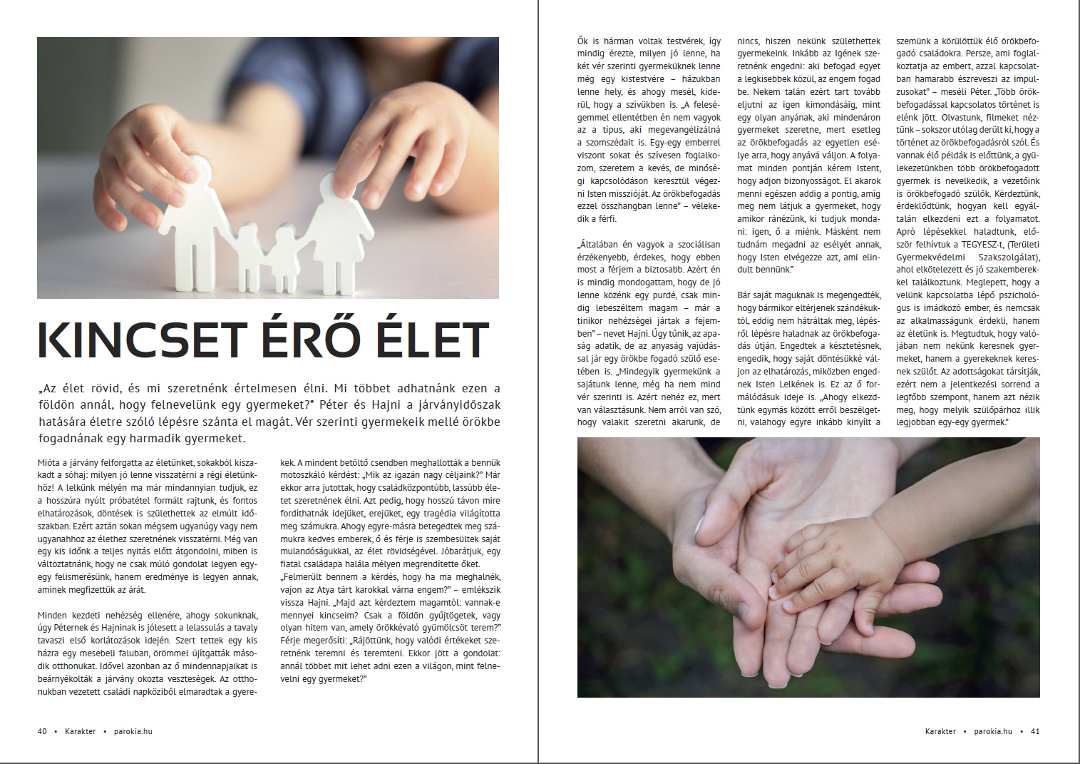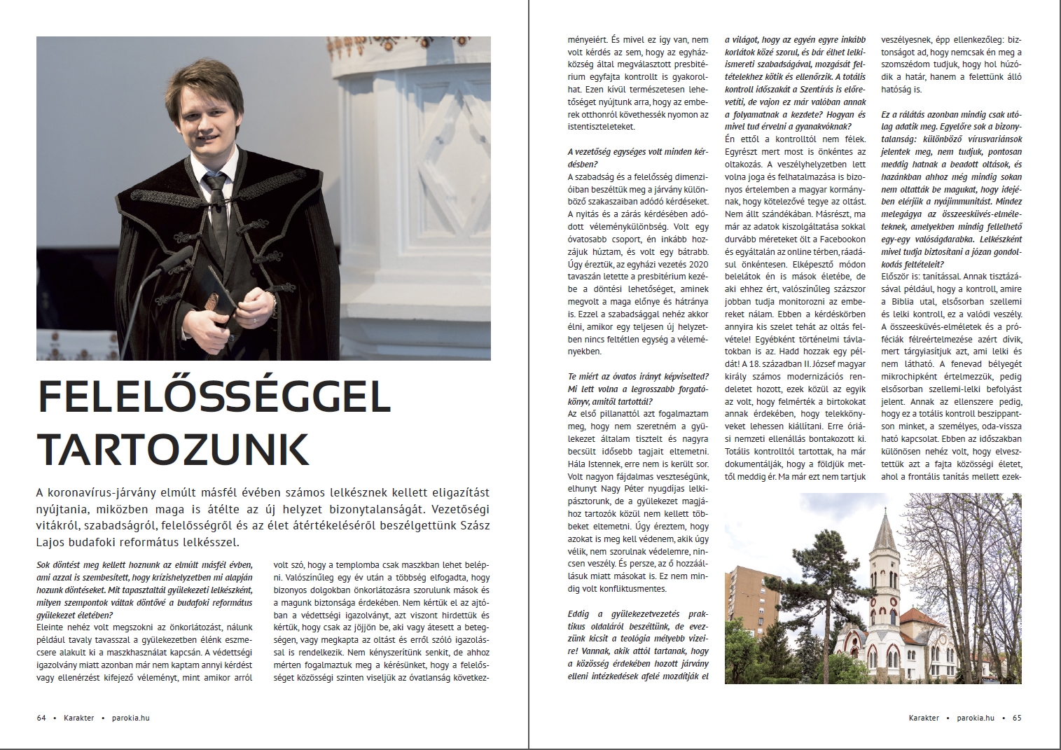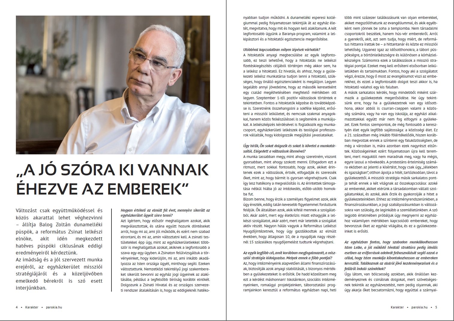 A hit és a valóság dimenziója itt ér össze. Csakúgy, mint azokban a történetekben és beszámolókban, amelyek az elmúlt fél évben jelentek meg a Parókia portál oldalán. Írásainkból a Karakter magazin legfrissebb számába is került jó néhány, a lap épp ezekben a napokban érkezik meg a dunamelléki gyülekezetekhez. Akik lemaradtak volna a webes cikkekről, most kezükbe vehetik és elolvashatják nyomtatásban is azokat a történeteket, amelyek Isten kibontakozó tervének egy-egy mai darabját mutatják be. Biztosat, persze, csak jóval nagyobb távlatból tudhatunk. Vannak azonban történetek, beszélgetések és események, amelyek önmagukért beszélnek – de nem csupán önmagukról, hanem arról az Istenről, akinek a követésére hozzánk hasonló emberek elköteleződtek. Akik őrzik a bizalmukat és a reménységüket.