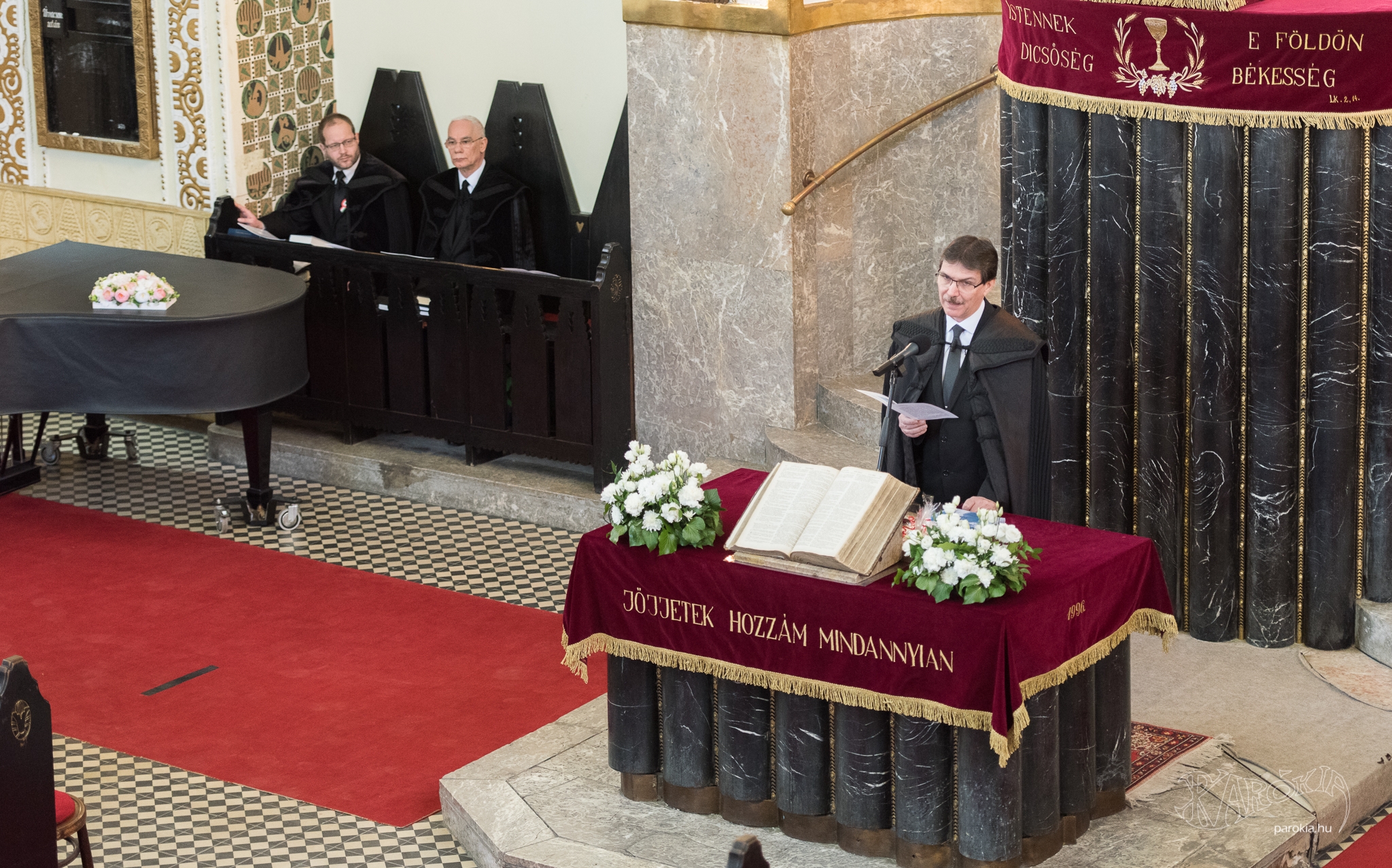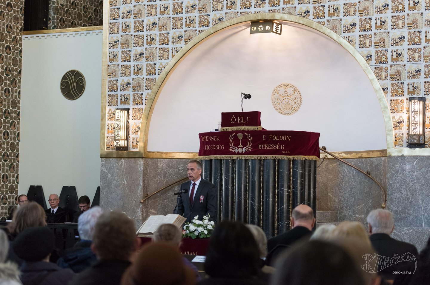 Gulyás Gergely Miniszterelnökséget vezető miniszter köszöntőjében felidézte, hogy negyven évvel ezelőtt ebben a templomban keresztelték meg, apja pedig presbiterként szolgált itt. Röviden beszélt a gyülekezet történetéről, és arról, hogy a 19. század végén született meg az igény a templom megépítésére, de ez végül csak a 20. század elején valósulhatott meg. „Négy nemzedék gyakorolhatta már itt a hitét” – fogalmazott. Hozzátette: a most véget ért munka sok évtizedes adósságot törleszt a közösség számára. Kitért arra is, hogy Magyarországnak szüksége van arra, hogy az egyház átvállaljon bizonyos feladatokat az államtól, ezt az Ukrajnából érkezett menekültek megsegítése is megmutatta. „Nem tudjuk, ebben meddig kell kitartanunk, de önzetlen segítségnyújtásra mindig is szükség lesz.”