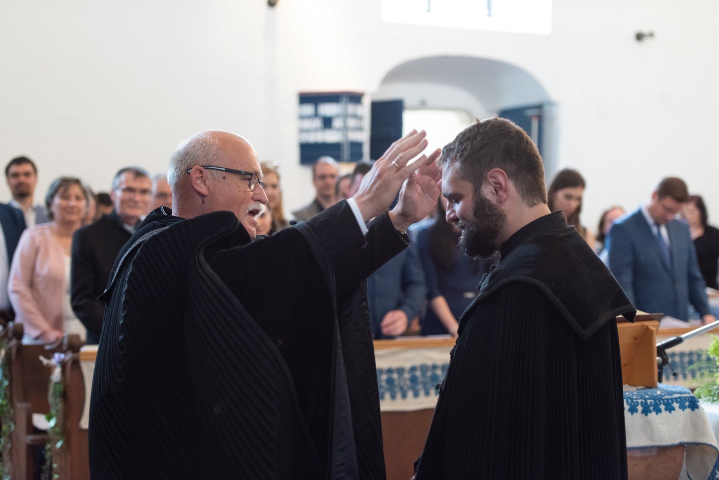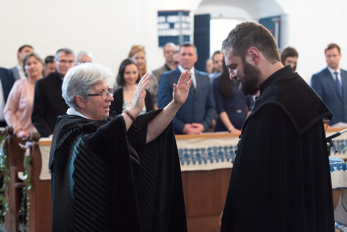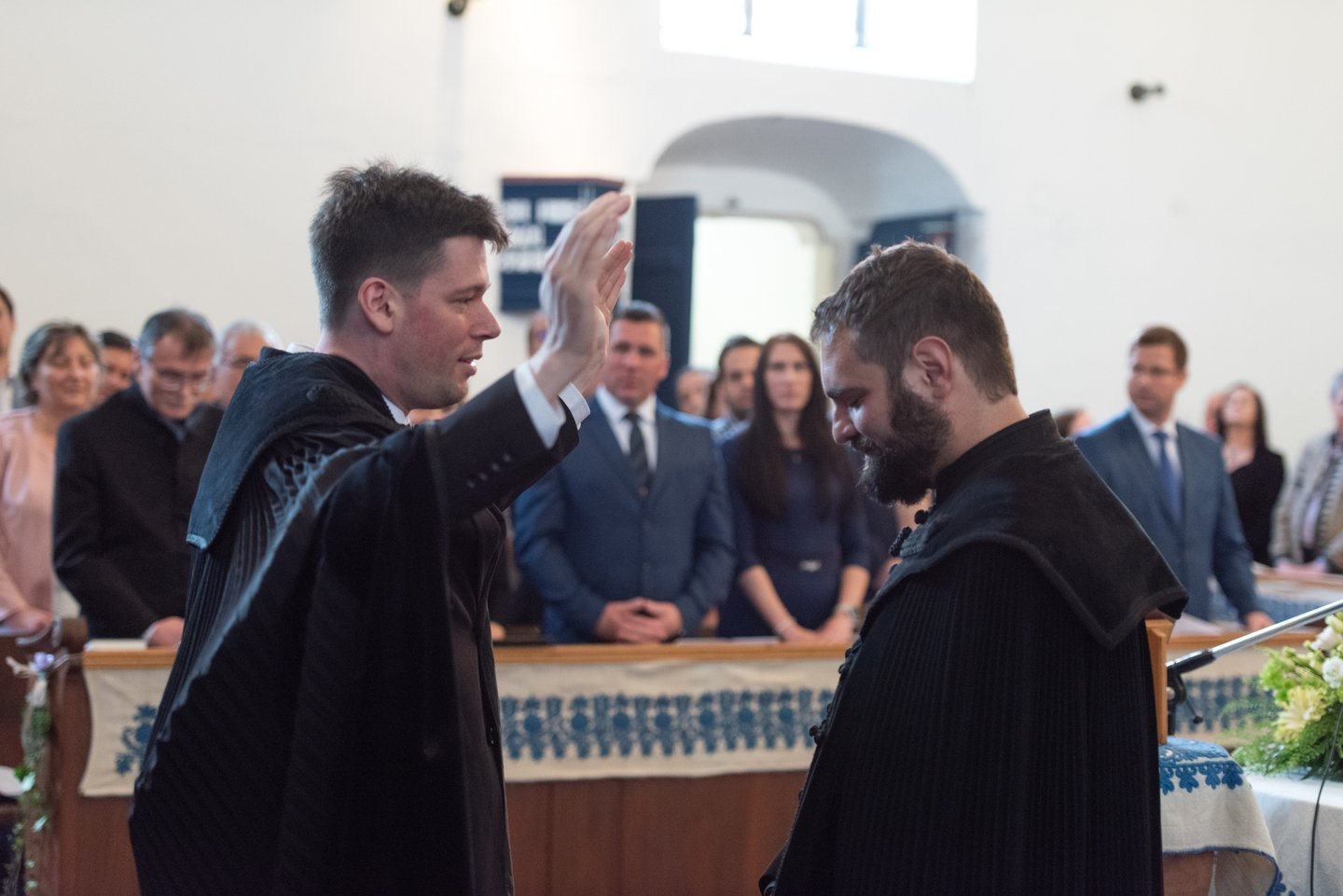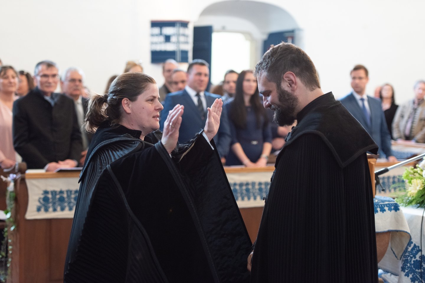 Az igehirdetést követően a beiktatás szolgálatát Hajdú Szabolcs Koppány, a Vértesaljai Református Egyházmegye esperese végezte. „Gyakran mondják, hogy haladnunk kellene a korral, ezért a hipersebességű WiFi kódját vagy az egyházmegyei felhő belépési adatait kellene átadnom a templom kulcsa és az egyházközség pecsétje helyett. De hiszek abban, amit ez a két tárgy szimbolizál. A templom évszázadok óta áll az idők viharai között is. Amikor megsérült egy háborúban, a közösség elsőként sietett azt helyreállítani. Az emberek a megépülése óta Krisztusra találtak falai között. Egy templomot csak belülről lehet elpusztítani: ha az ide járók elfelejtik, mi az első szeretet. A pecsétet sokszor gyűlöljük, mert az adminisztráció jut róla eszünkbe. Az embereken már ott van a pecsét, legyen ott a dokumentumokon is.”