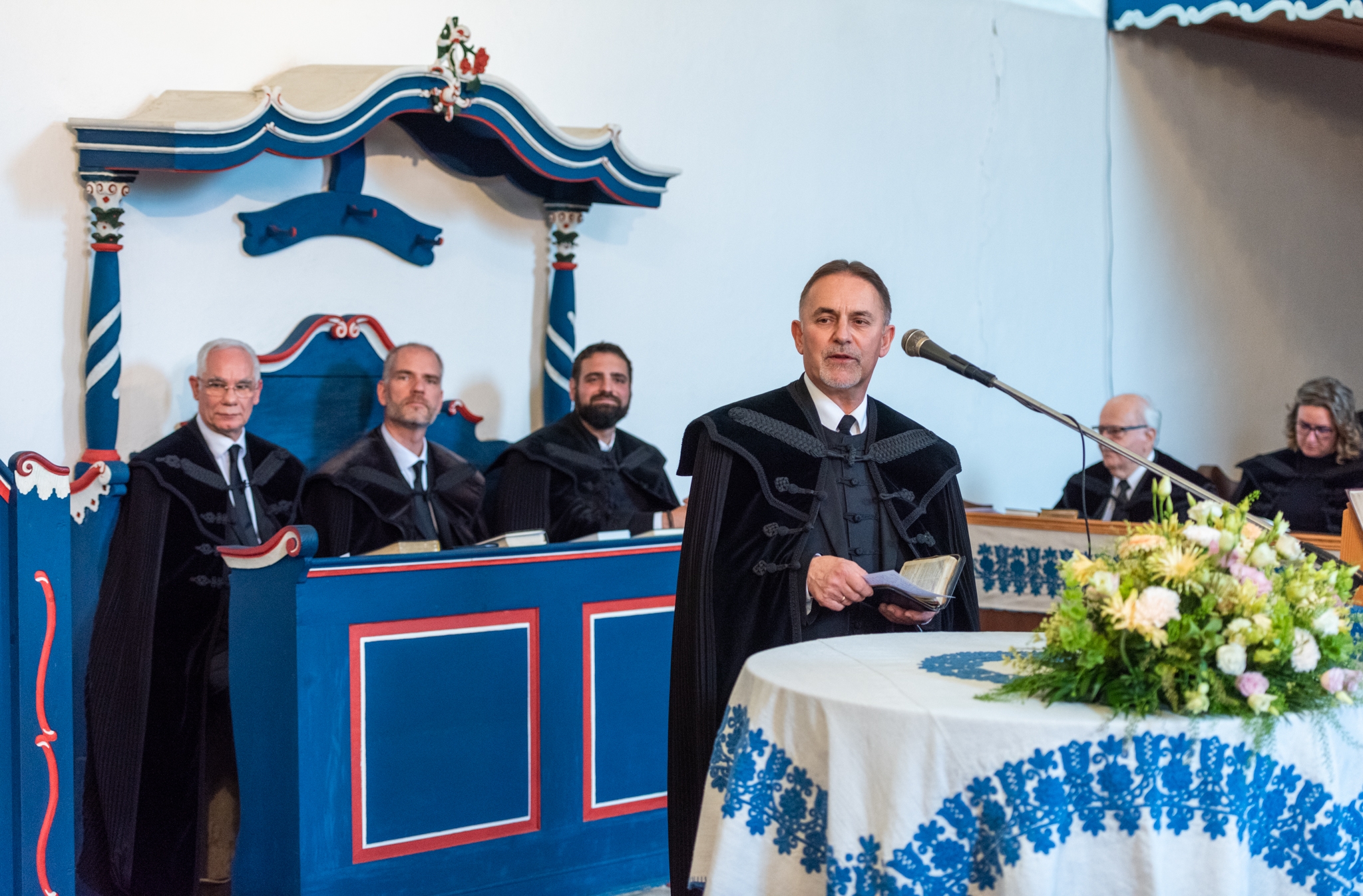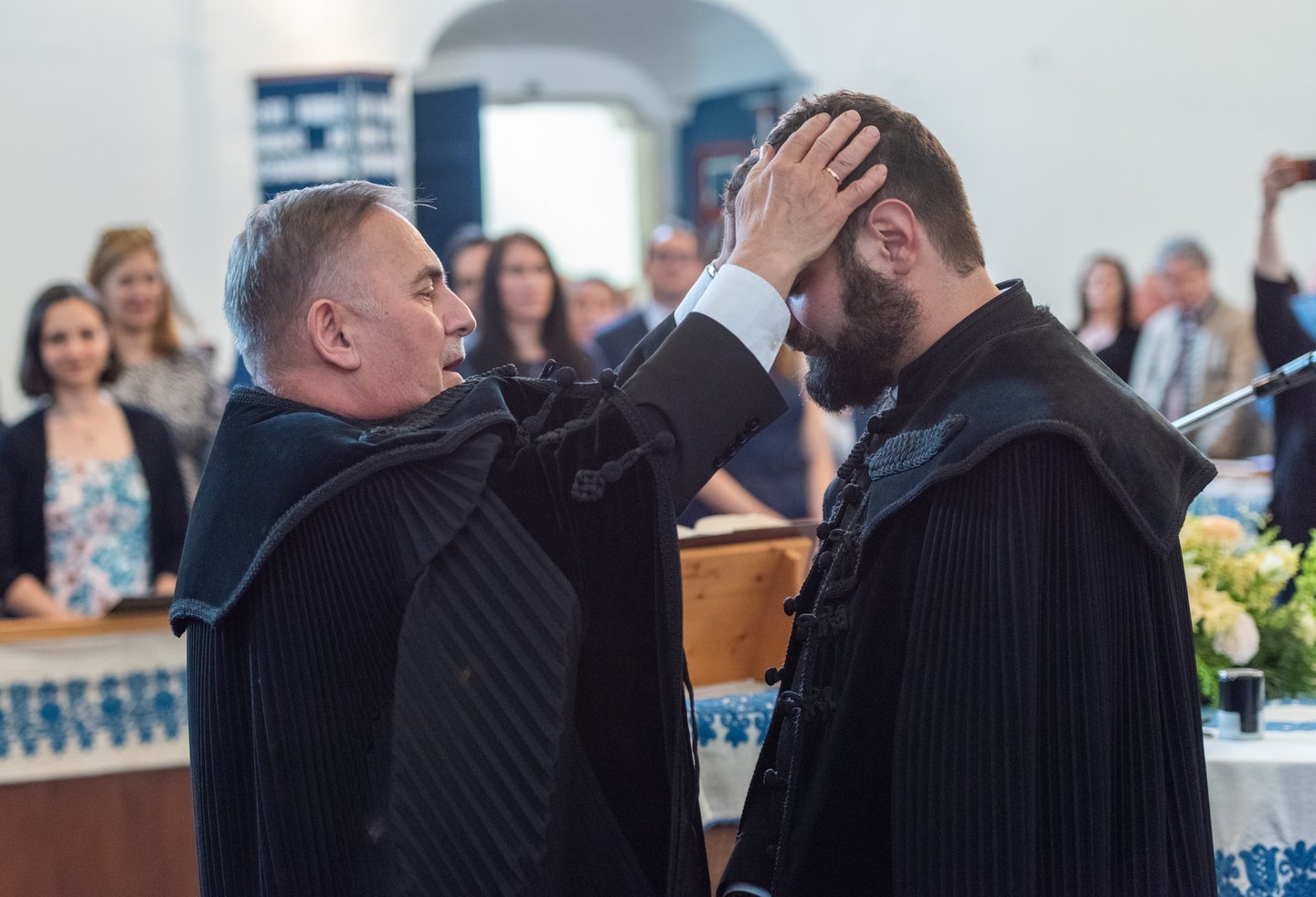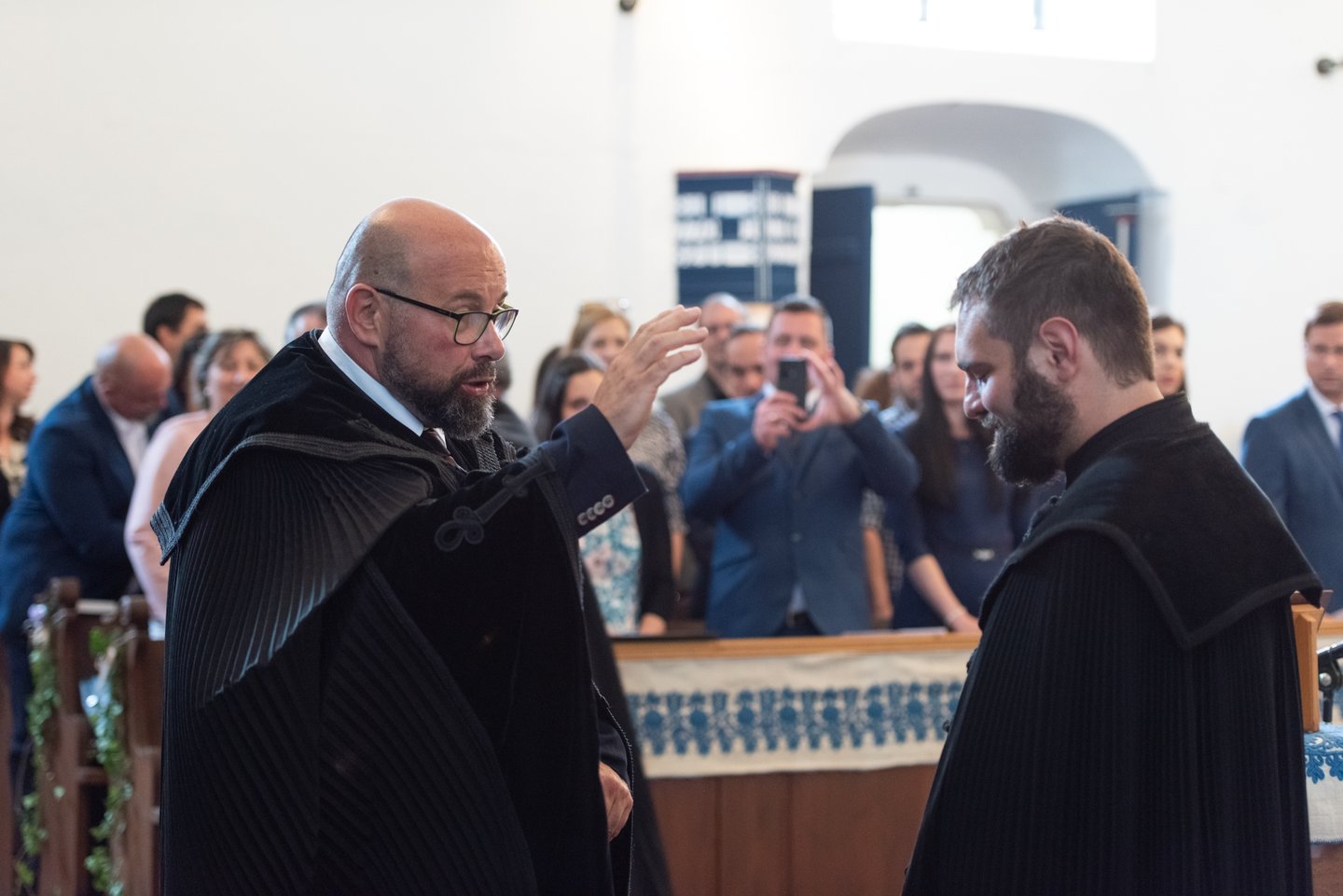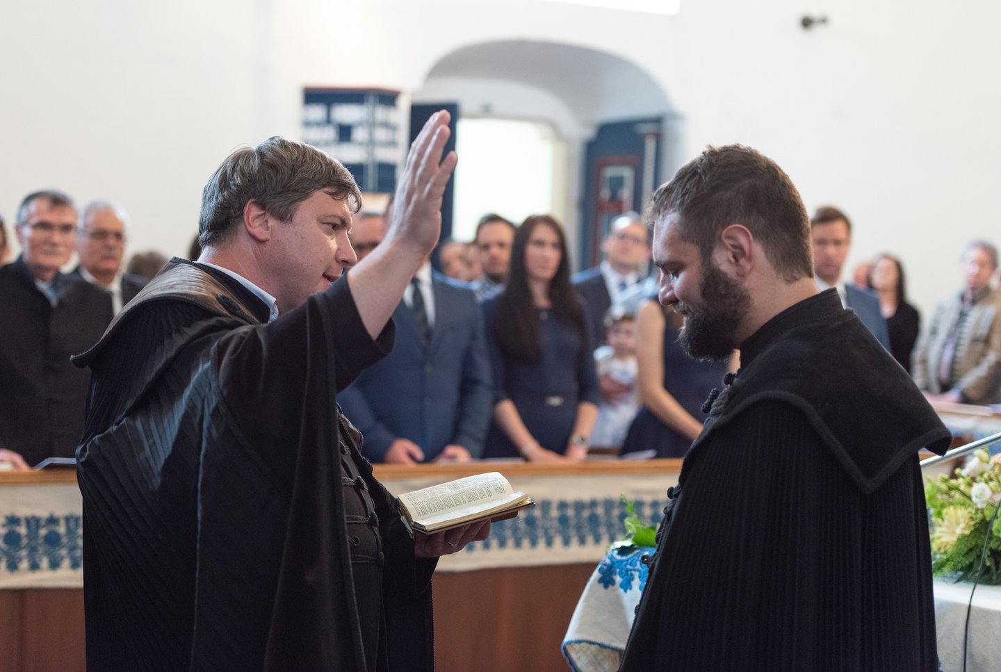 Az igehirdetést követően a beiktatás szolgálatát Hajdú Szabolcs Koppány, a Vértesaljai Református Egyházmegye esperese végezte. „Gyakran mondják, hogy haladnunk kellene a korral, ezért a hipersebességű WiFi kódját vagy az egyházmegyei felhő belépési adatait kellene átadnom a templom kulcsa és az egyházközség pecsétje helyett. De hiszek abban, amit ez a két tárgy szimbolizál. A templom évszázadok óta áll az idők viharai között is. Amikor megsérült egy háborúban, a közösség elsőként sietett azt helyreállítani. Az emberek a megépülése óta Krisztusra találtak falai között. Egy templomot csak belülről lehet elpusztítani: ha az ide járók elfelejtik, mi az első szeretet. A pecsétet sokszor gyűlöljük, mert az adminisztráció jut róla eszünkbe. Az embereken már ott van a pecsét, legyen ott a dokumentumokon is.”