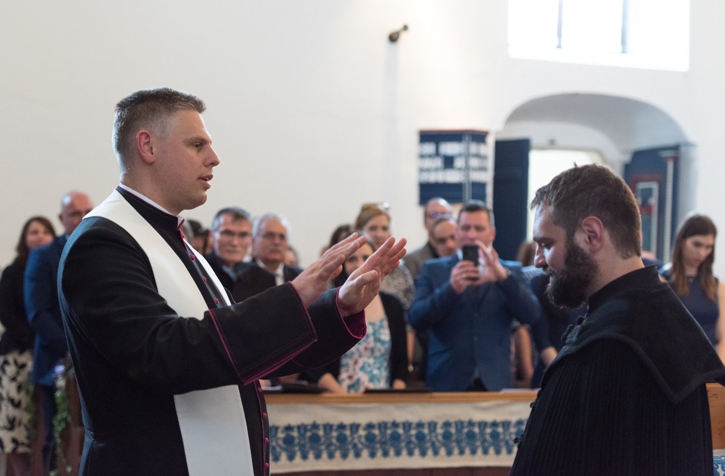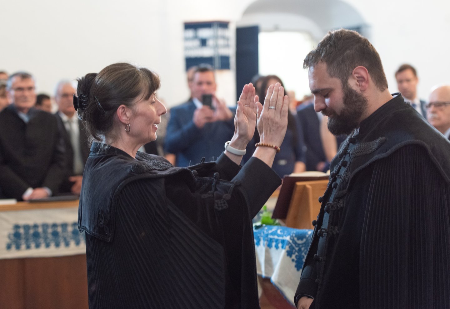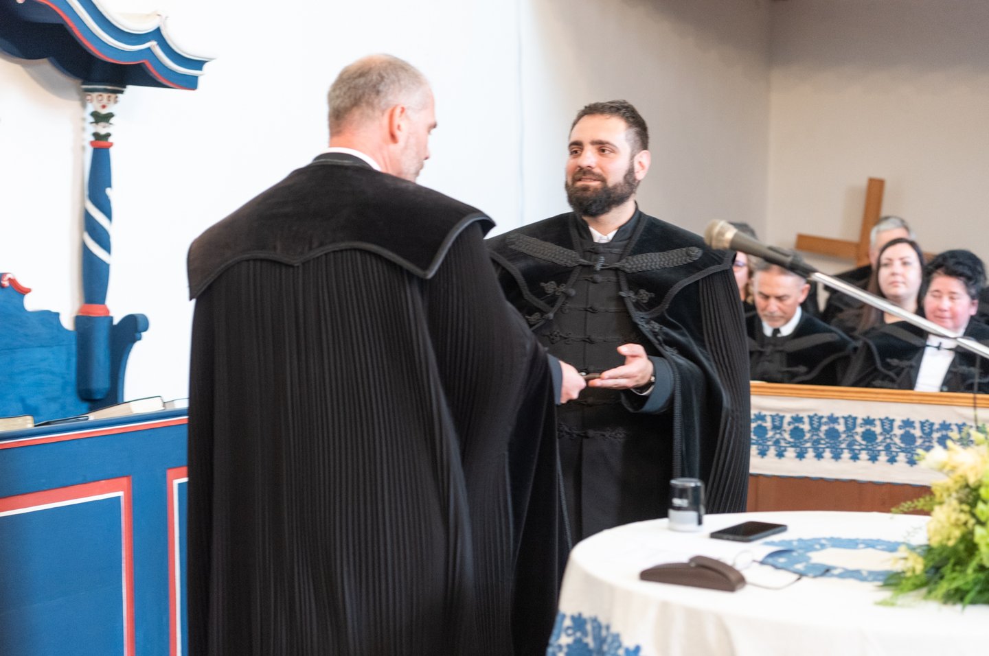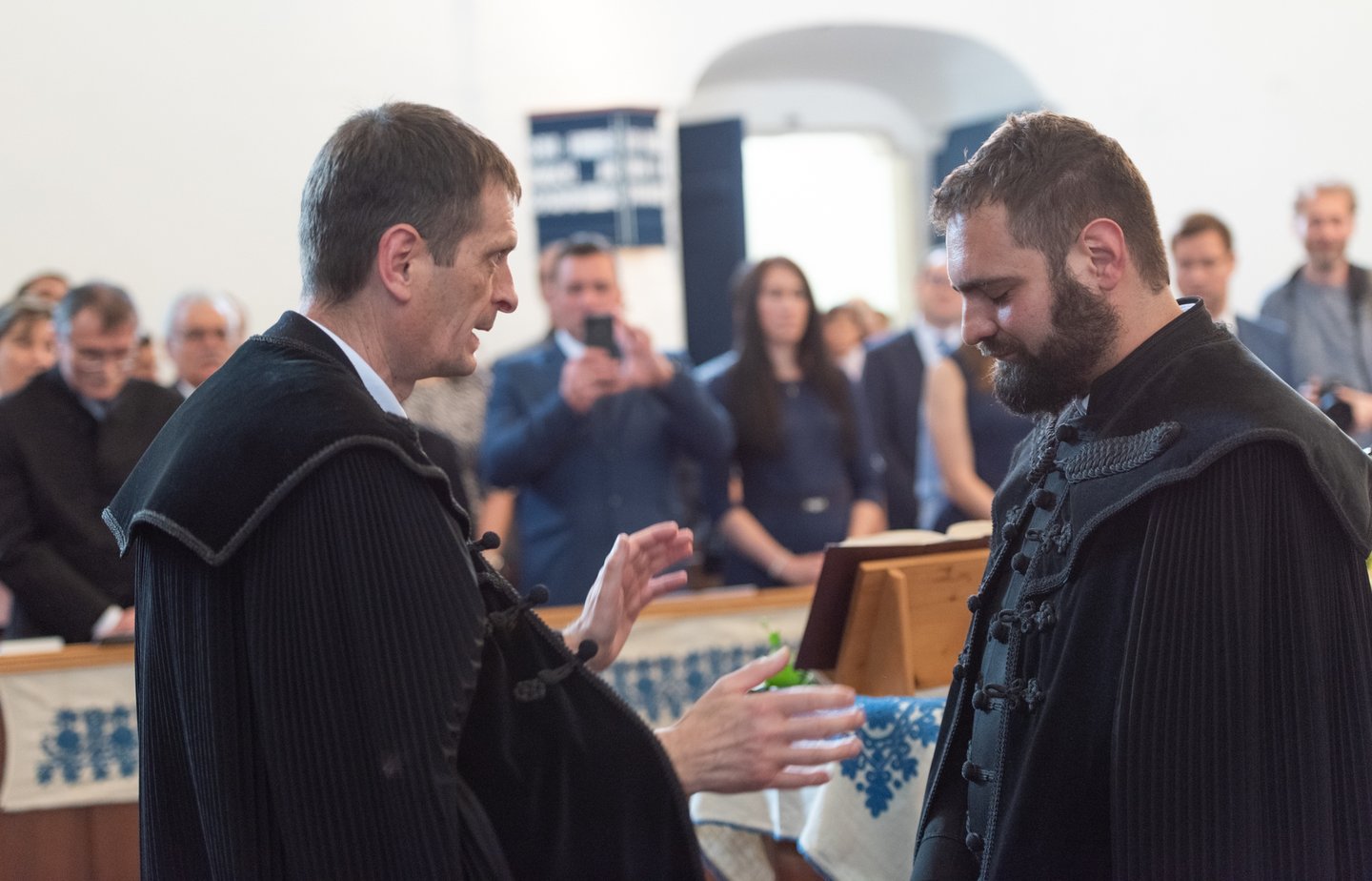 Az igehirdetést követően a beiktatás szolgálatát Hajdú Szabolcs Koppány, a Vértesaljai Református Egyházmegye esperese végezte. „Gyakran mondják, hogy haladnunk kellene a korral, ezért a hipersebességű WiFi kódját vagy az egyházmegyei felhő belépési adatait kellene átadnom a templom kulcsa és az egyházközség pecsétje helyett. De hiszek abban, amit ez a két tárgy szimbolizál. A templom évszázadok óta áll az idők viharai között is. Amikor megsérült egy háborúban, a közösség elsőként sietett azt helyreállítani. Az emberek a megépülése óta Krisztusra találtak falai között. Egy templomot csak belülről lehet elpusztítani: ha az ide járók elfelejtik, mi az első szeretet. A pecsétet sokszor gyűlöljük, mert az adminisztráció jut róla eszünkbe. Az embereken már ott van a pecsét, legyen ott a dokumentumokon is.”