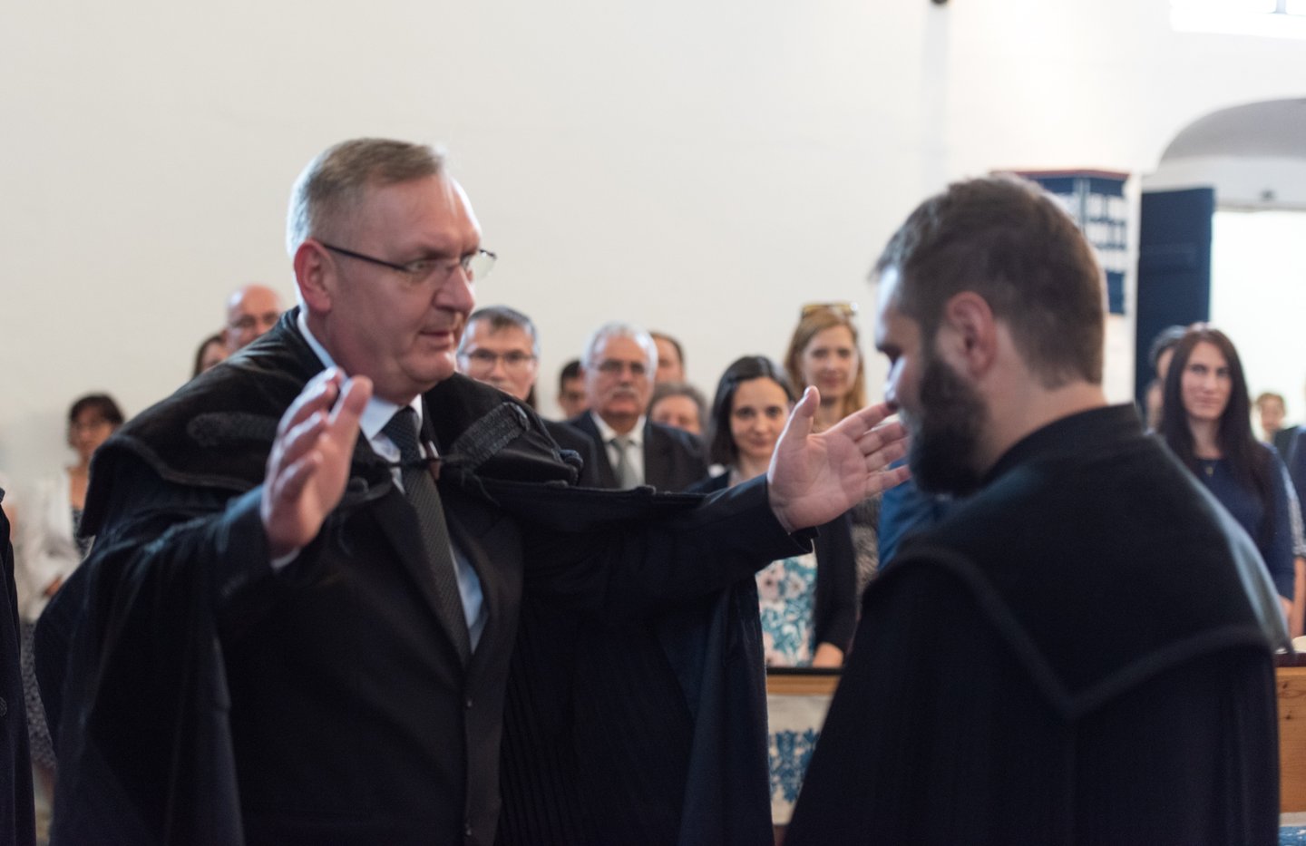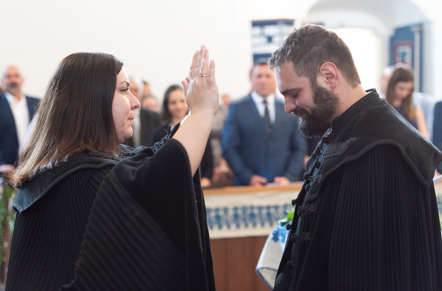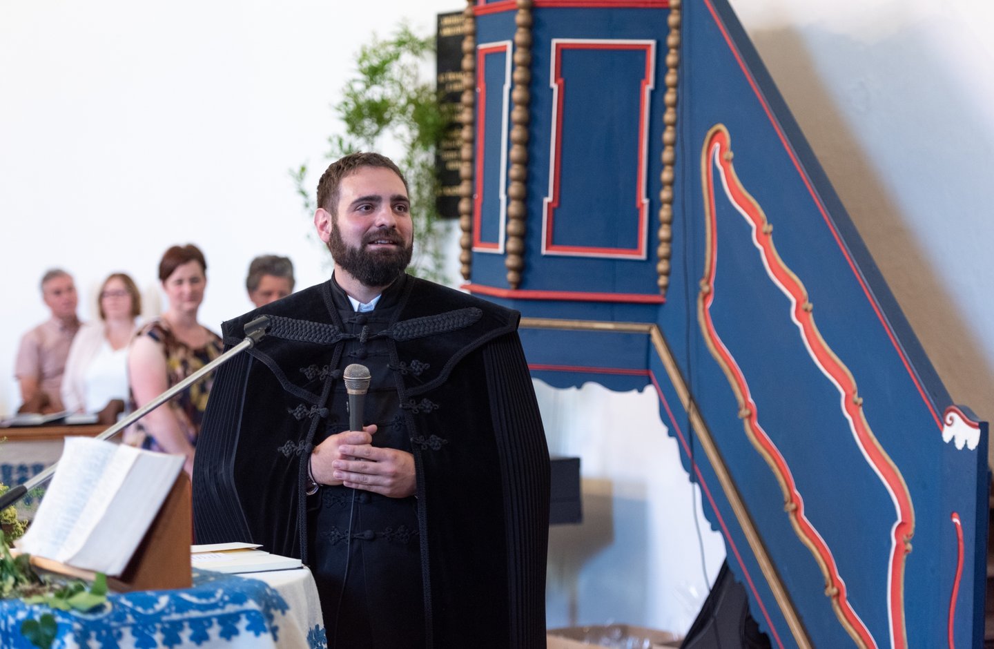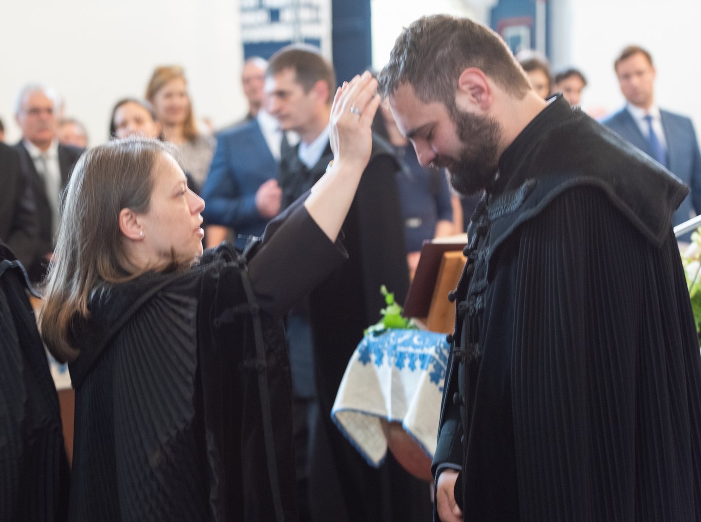 Az igehirdetést követően a beiktatás szolgálatát Hajdú Szabolcs Koppány, a Vértesaljai Református Egyházmegye esperese végezte. „Gyakran mondják, hogy haladnunk kellene a korral, ezért a hipersebességű WiFi kódját vagy az egyházmegyei felhő belépési adatait kellene átadnom a templom kulcsa és az egyházközség pecsétje helyett. De hiszek abban, amit ez a két tárgy szimbolizál. A templom évszázadok óta áll az idők viharai között is. Amikor megsérült egy háborúban, a közösség elsőként sietett azt helyreállítani. Az emberek a megépülése óta Krisztusra találtak falai között. Egy templomot csak belülről lehet elpusztítani: ha az ide járók elfelejtik, mi az első szeretet. A pecsétet sokszor gyűlöljük, mert az adminisztráció jut róla eszünkbe. Az embereken már ott van a pecsét, legyen ott a dokumentumokon is.”