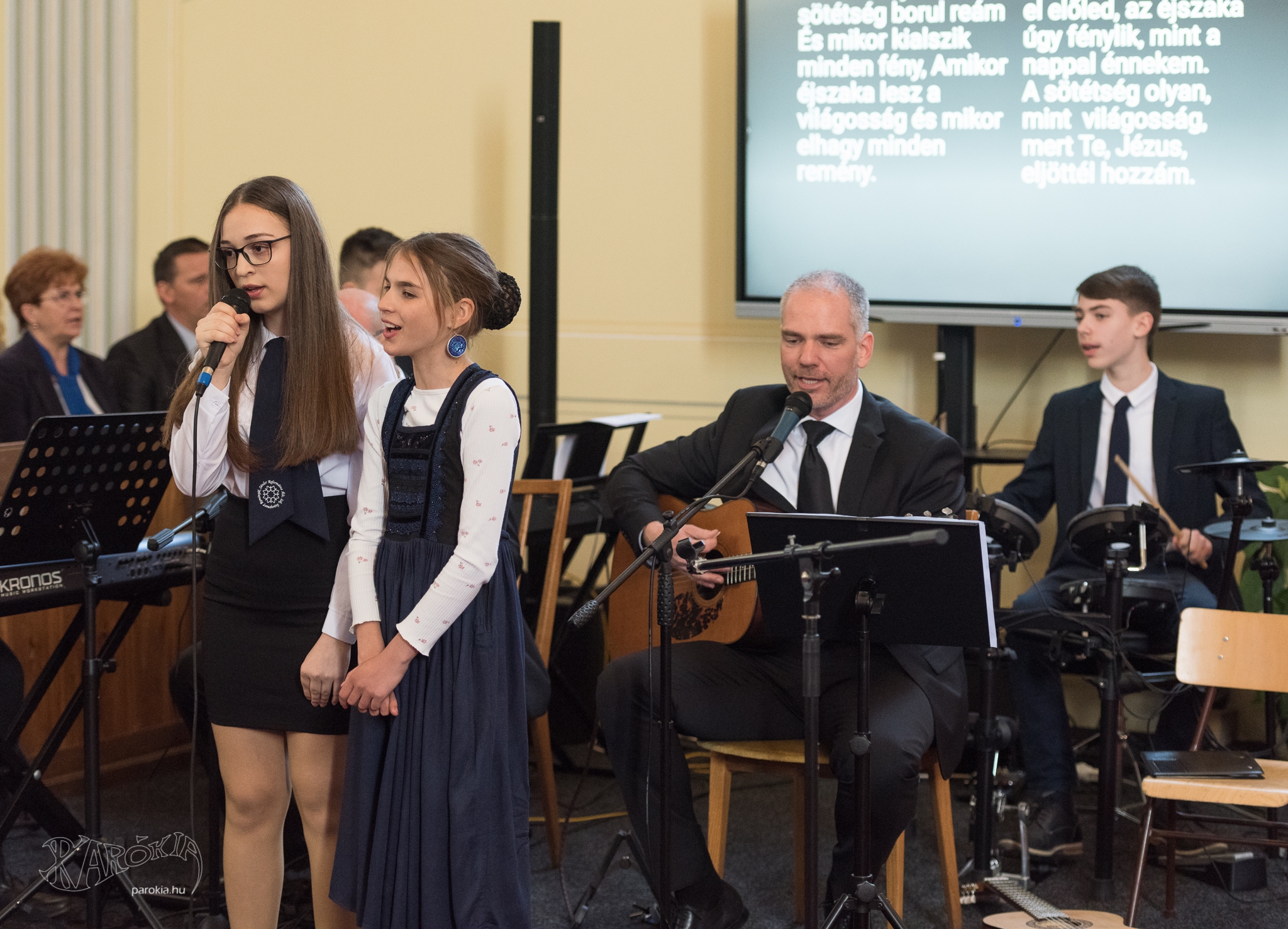 Az istentiszteleten a zenei szolgálatot a gyülekezet zenekara látta el. Immár tíz éve minden negyedik vasárnap szolgálnak a családi istentiszteleten, emellett egyéb egyházi és iskolai rendezvényen is zenélnek. A zenekar állandó tagjai Hajdú Szabolcs Koppány esperes, ifj. Márkosi József, Őrszigety Dávid és Hajdú Merse Csaba. Két dicsőítő énekben kísérték a gyülekezetet.