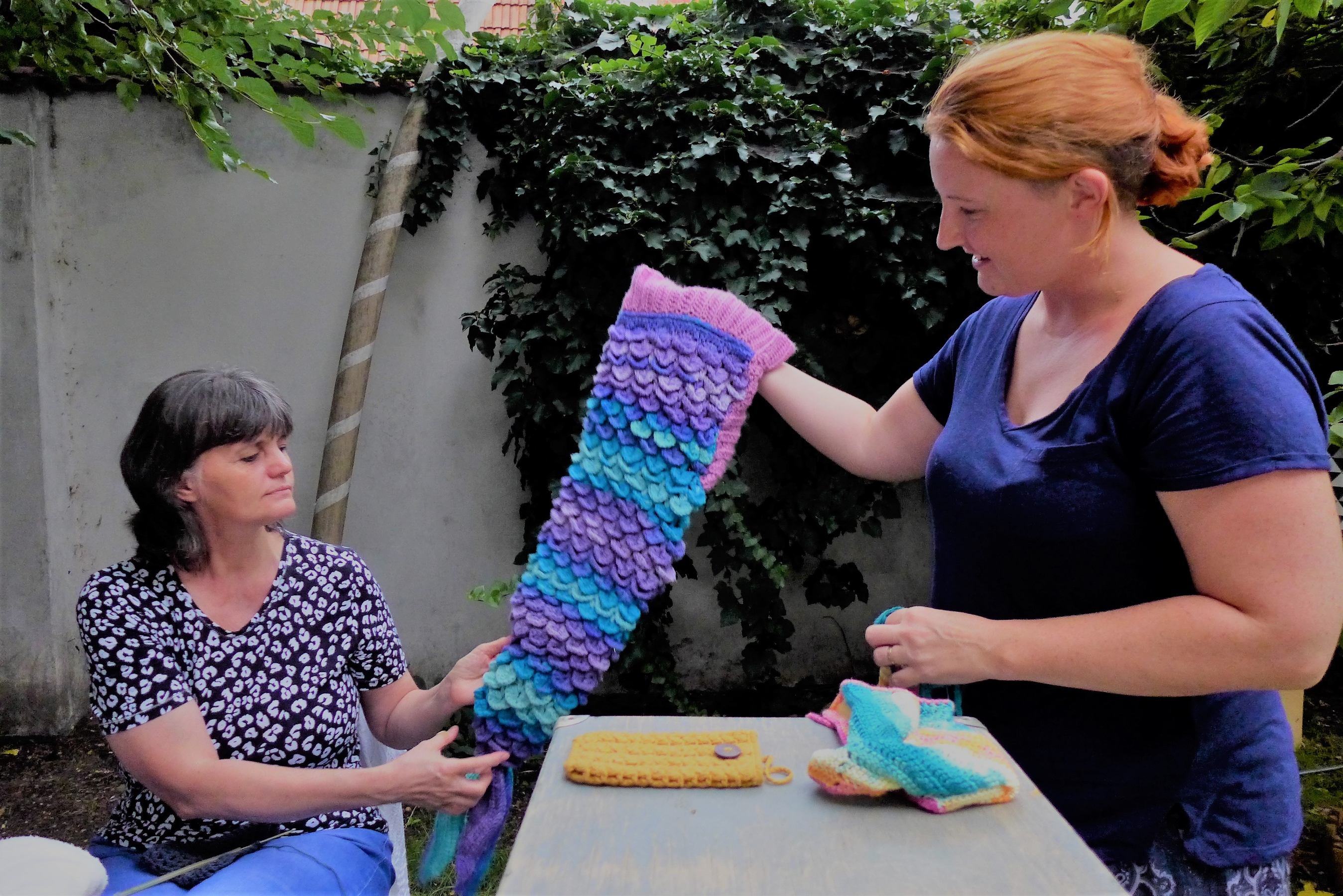 Közben megérkezik Müller Hajni is, ez az első fonó, amin részt vesz. Alighogy elkezdünk beszélgetni, a keze között perdülő fonalak szabályos mintává állnak össze, pedig most vett a kezébe először horgolótűt. Közben pedig szóba kerül a munka, a lakáskeresés, néhány konyhai fogás, az emberi kapcsolatok és Isten vezetése. „Ha az ilyen összejöveteleknek nincsen önmagukban is értéke, akkor a többinek sincs” – szögezi le Hajni arra a kérdésemre, vajon miért jó, ha egy gyülekezetben a lelki alkalmakon túl ilyen informális összejövetelekre is rendelkezésre áll elkülönített tér és idő. A fonó egymás megismerésének a legtermészetesebb formája, ahol azt is megosztják, amit egy imakörön sem feltétlen mondanának el magukról hirtelenjében – értenek egyet.