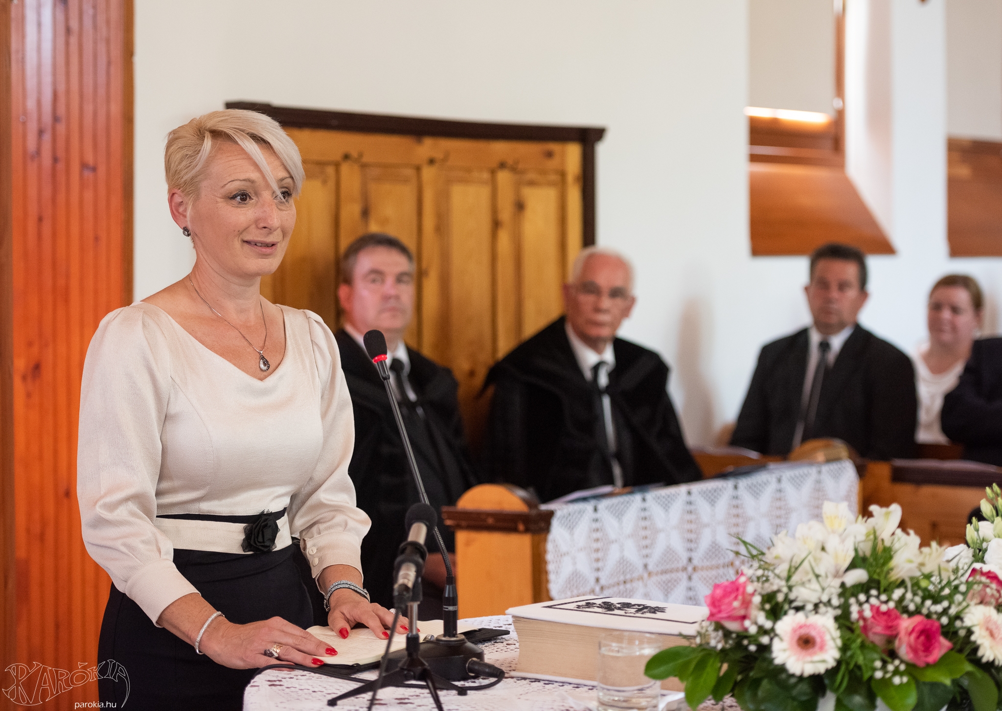 Pallagi Andrea református lelkész a barátok és lelkészek nevében köszöntötte a Kovács családot, kiemelve és megköszönve szolgálatuk hitelességét, a lelkész házaspár misszióját a házasság intézménye iránt, és barátságukat, mely még a teológián töltött időkben kezdődött.
