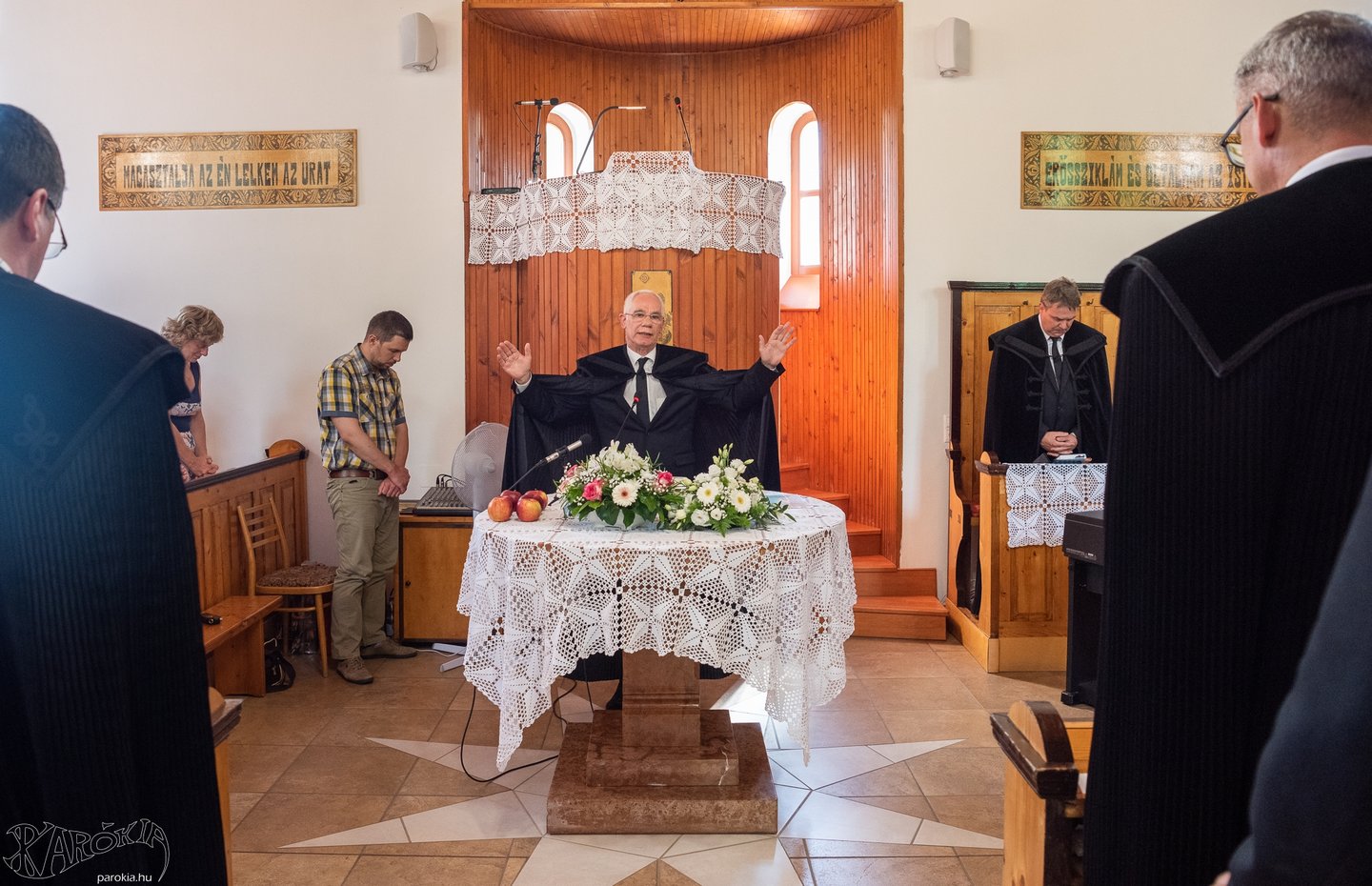 A köszöntések sorában utolsóként szólalt fel és kívánt hosszú, áldott szolgálatot Lehoczky István, a gyülekezet főgondnoka Malakiás próféta szavaival: „Mert a pap ajkai őrzik az Isten ismeretét, és tanítást várnak szájából, hiszen a Seregek URának követe ő.” (Malakiás könyve 2. rész, 7. vers)
