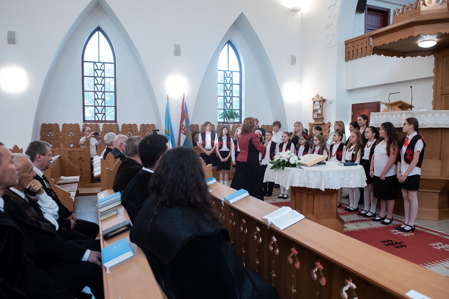 A gyülekezet fenntartásában 2018 óta működő Vörösmarty Mihály Általános Iskola gyermekkórusa és tanárai énekkel köszöntötték a beiktatott tiszteletest, Varga Judit hittanoktató, énektanár vezetésével.