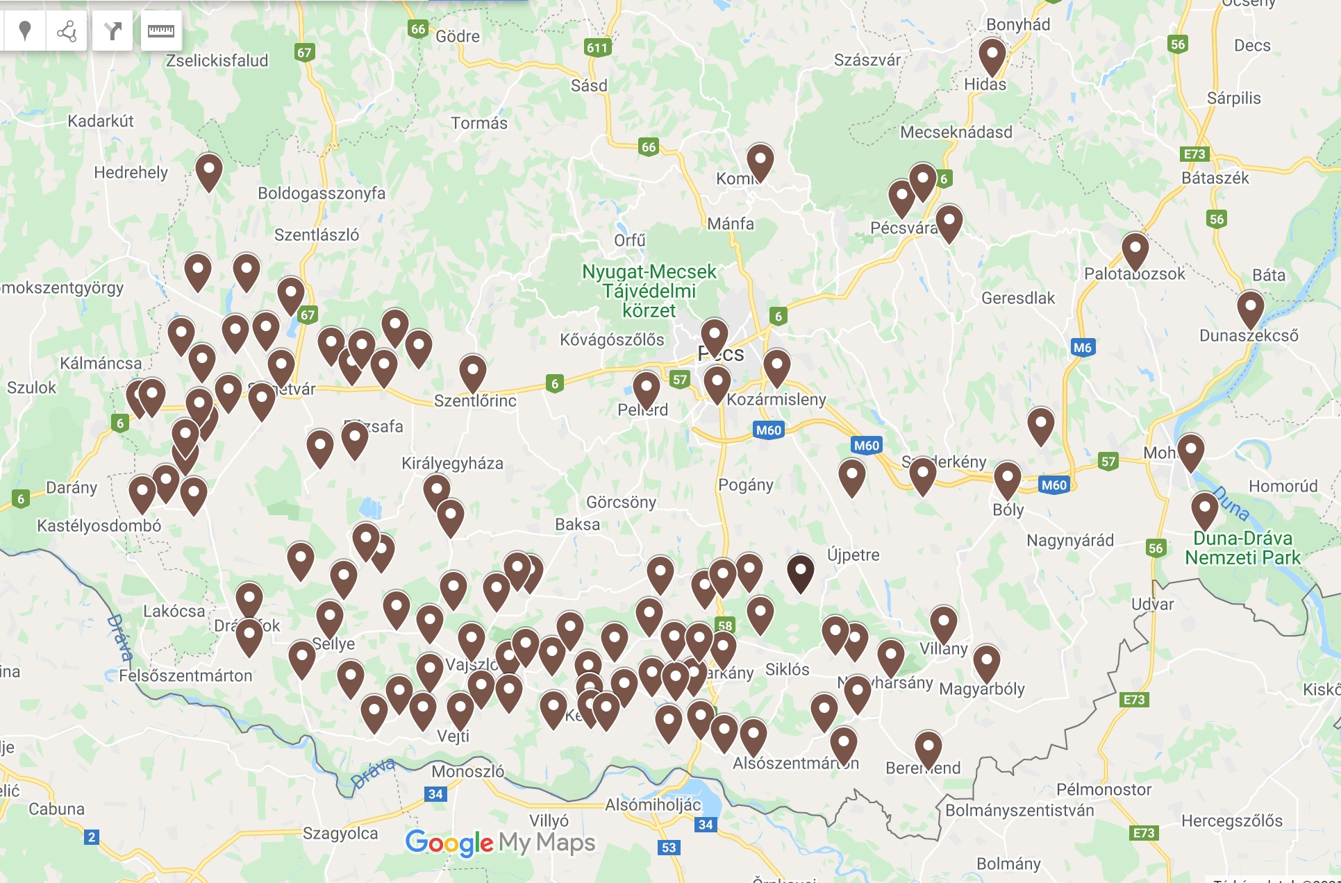 A Baranyai Református Egyházmegye templomai: