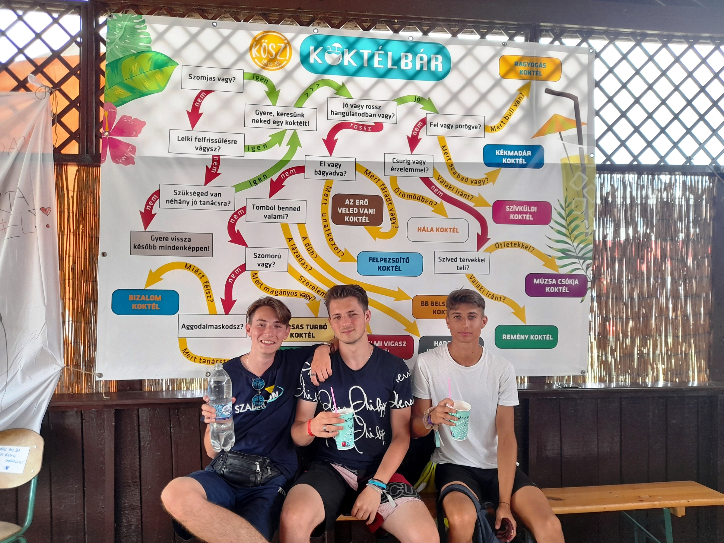 Van egy felállított sátrunk vagy pultunk, ahol különféle alkoholmentes koktélokat készítünk. A koktélbár fő célja azonban, hogy ne csak italt kínáljunk, hanem közösségi teret, ahol beszélgethetünk a fiatalokkal, és ahol esetleg új önkénteseket találhatunk. A kötetlen beszélgetések mellé mindig szervezünk komplexebb szórakoztató és elmélyülős programokat is, ügyelünk a jó hangulatra és a lelki feltöltődésre. Ez tehát minden szempontból illik a Csillagpont vagy Szélrózsa kínálatába, de más fesztiválokon is népszerű szokott lenni. Szeretnénk minél több helyre eljutni vele, de ez a COVID-tól és az aktuális kapacitásunktól is függ, akárcsak a többi programunk sorsa.