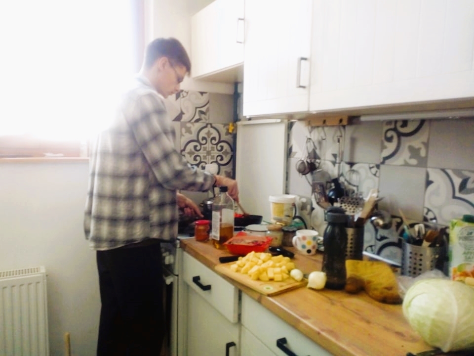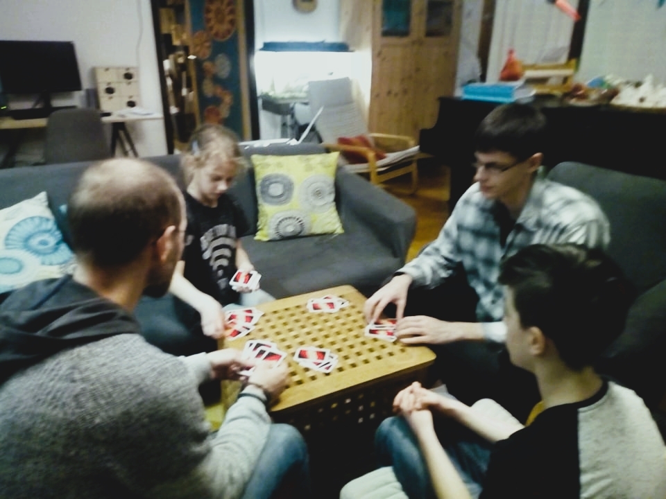 Mint a legtöbb tini, az ukrán fiú is sokat van a szobájában egyedül, de nagyon kedvesen részt vesz a közös családi étkezésekben – mondja Eszter. „Együtt ülünk asztalhoz, együtt imádkozunk, együtt sétáltatunk kutyát. Többször elkísért, amikor adományt vittem a Veszprémben elszállásolt ukrajnai édesanyáknak és gyerekeknek, és mivel szót értenek egymással, valahogy az ő bizalmuk is nagyobb felénk. Szása itt ismerkedett meg egy nővel, akivel egy megyében élnek Ukrajnában, és az felajánlotta neki, hogy szívesen tanítja angolul, így velünk is kommunikálhat. Szása jól kijön a gyerekeinkkel is, és bár még nem tudnak beszélgetni, néha kosárlabdáznak. A lányunk nekiadta az egyik füzetét is az angolórákhoz, mert addig szakadt kis papírokra írogatott.”