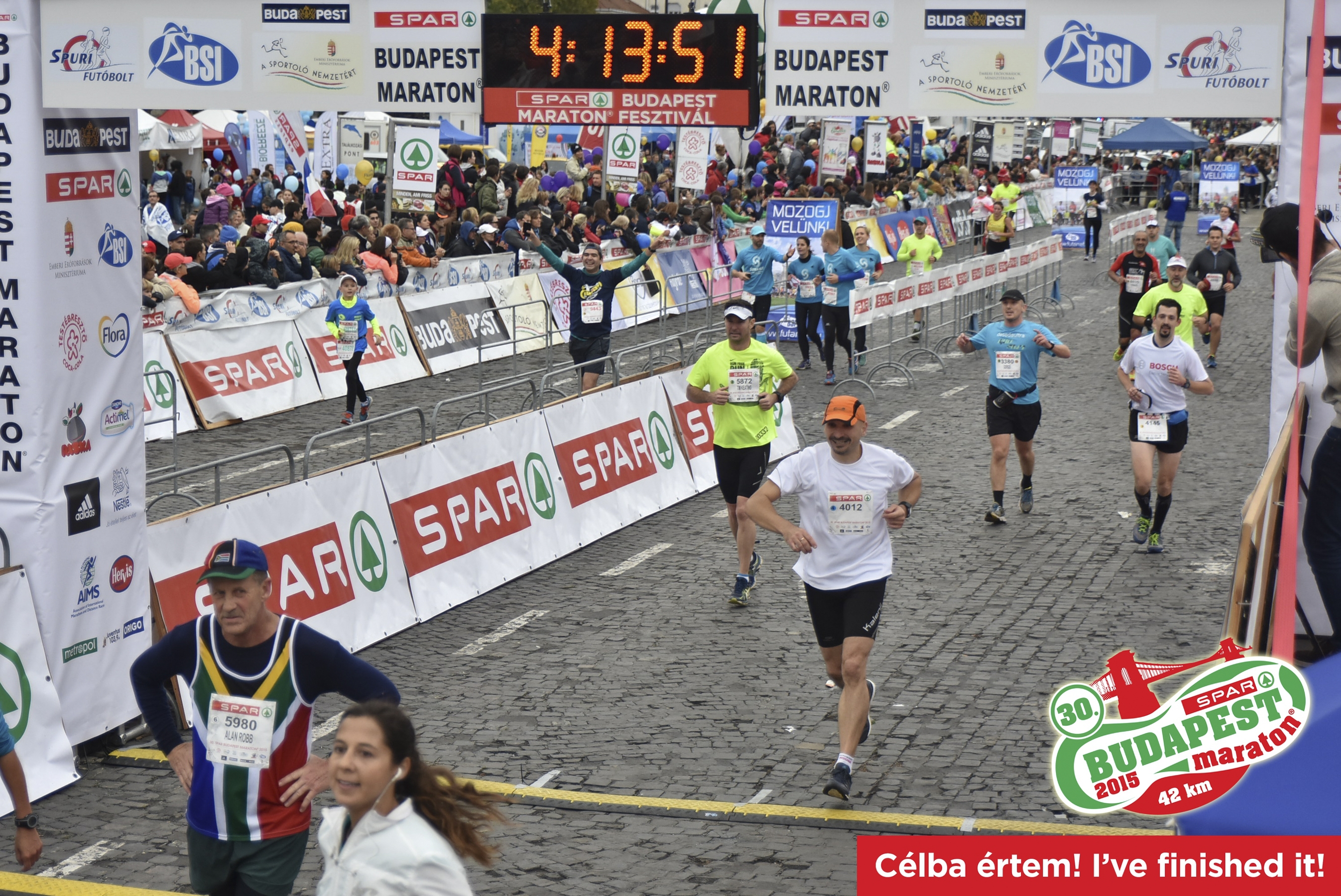 Amíg tudtam még gondolkodni, gondoltam rá. De a maratoni táv olyan hosszú, hogy az órák elteltével kirostálódnak az ember gondolatai. 4 óra 3 perc 56 másodperc alatt futottam le a 42,2 km-es távot. Az volt a vágyam, hogy négy órán belül teljesítsek, de nem tudtam, képes leszek-e rá, hiszen korábban soha nem futottam még ilyen sokat. Az öcsémék azt mondták, hogy ne az időre koncentráljak, hanem az legyen a cél, hogy lefussam a távot. A családom, a feleségem és a lányaim pedig ott vártak a célban.