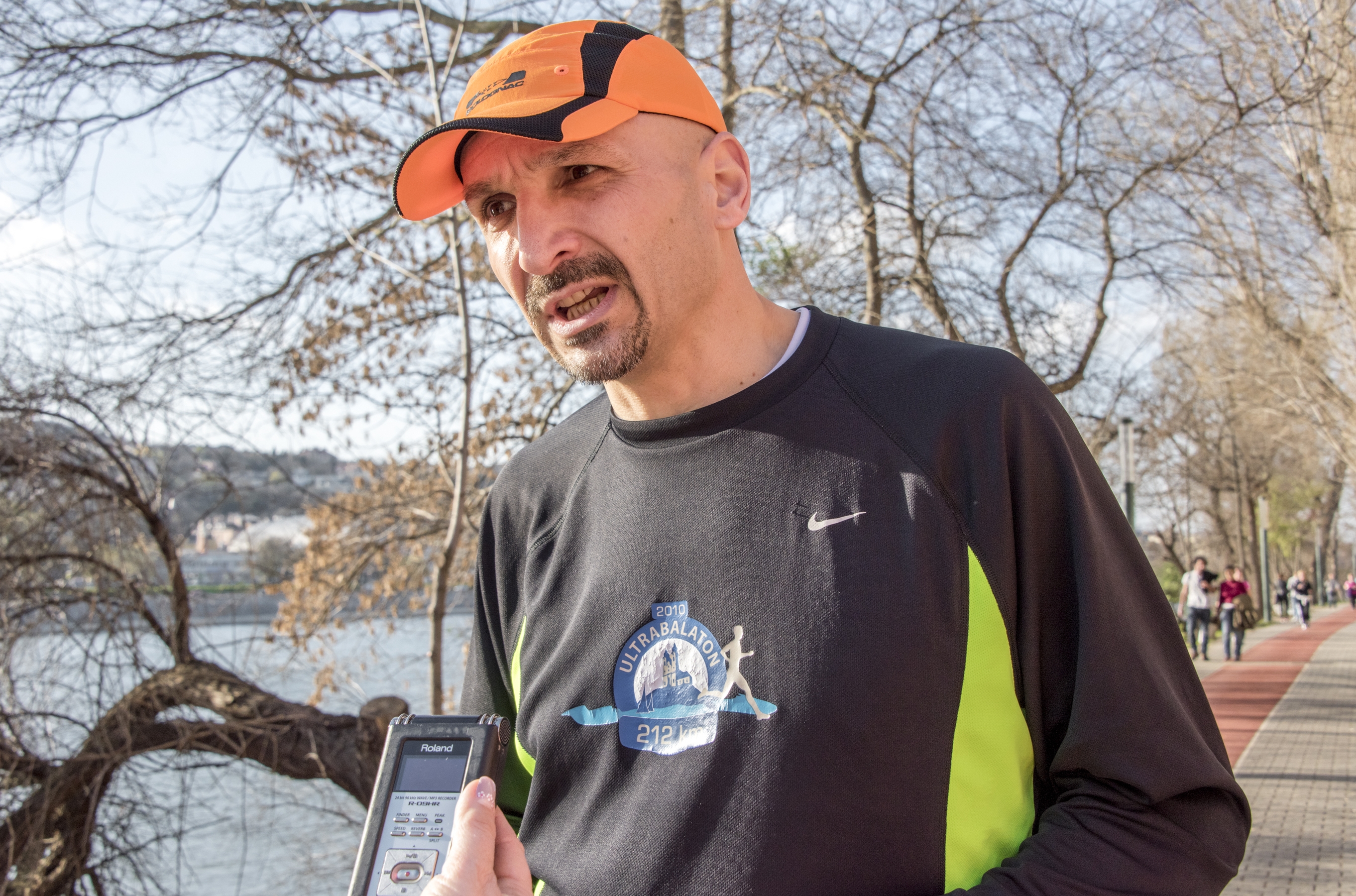 Interjúkészítés közben forognak is utánunk itt a margitszigeti futópályán. Nézik, hogy vajon melyik híres sportolóval készül beszélgetés, hiszen az alkata alapján akár sportoló is lehetne.