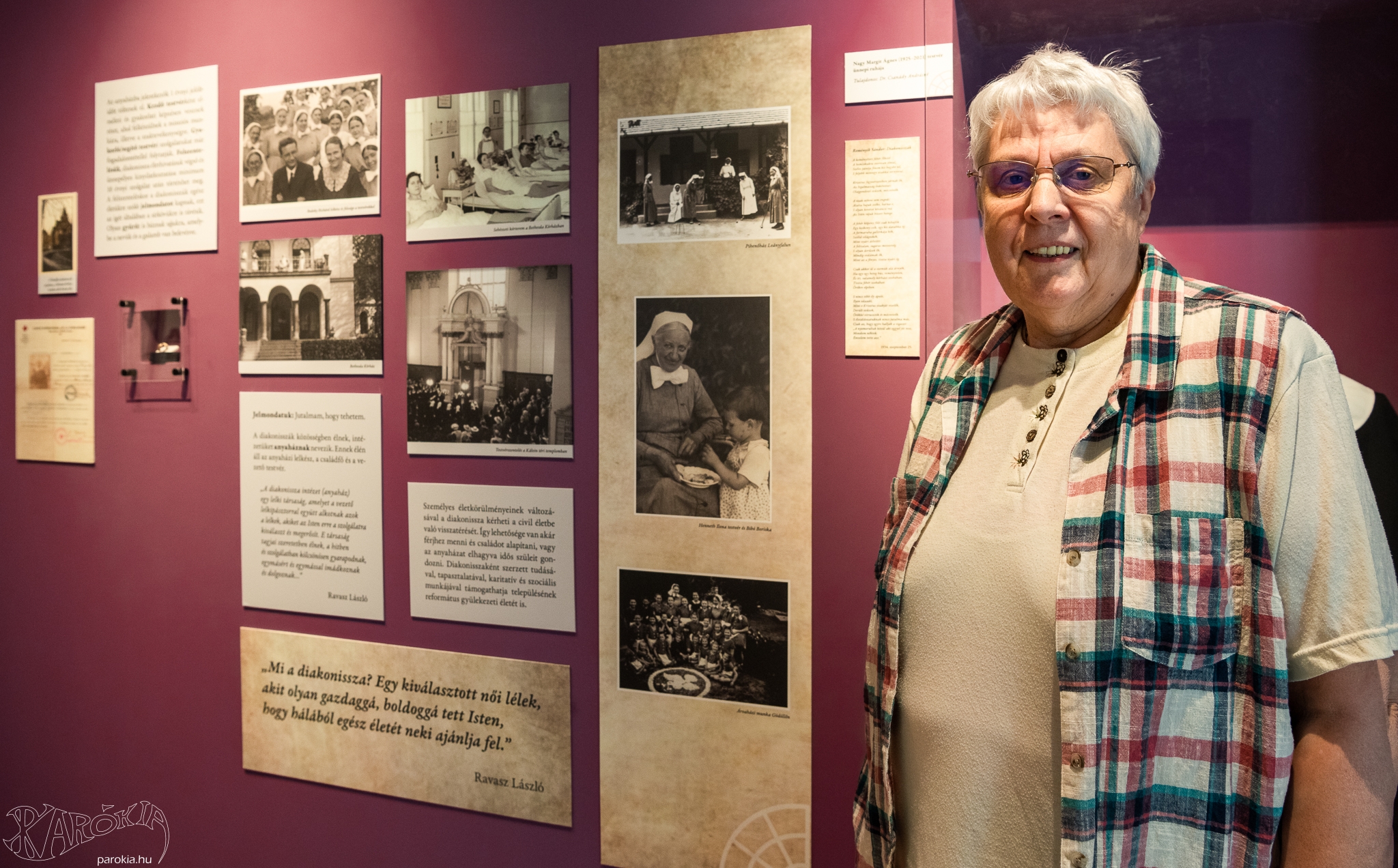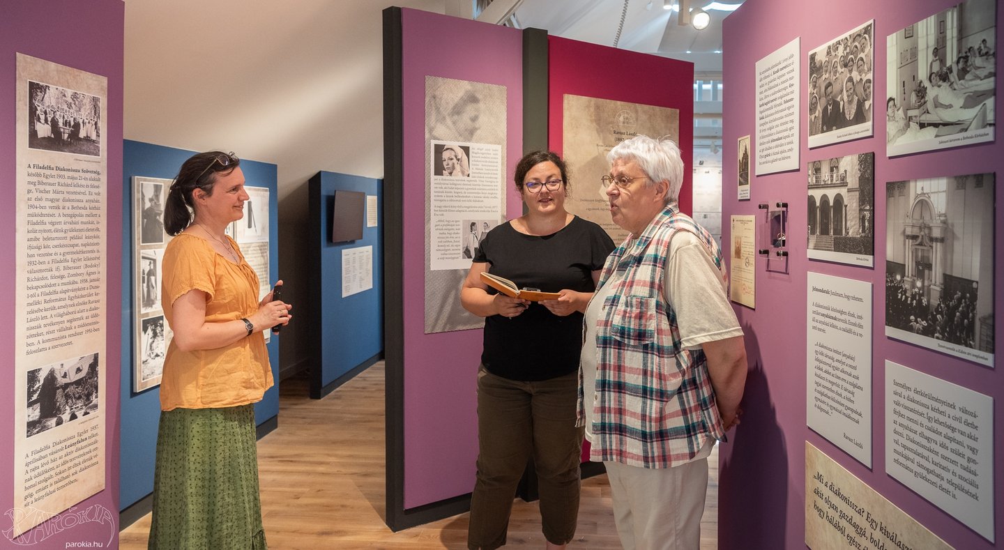 A zűrzavaros huszadik században az emberi értékek őrzői között feltűnnek a diakonisszák is, akik magas színvonalú munkát végeztek az egészségügyben, az árvaházakban, vagy tanítóként szolgálva, gyülekezeti munkát végezve. A kiállítási darabok között látható az utolsó diakonissza, Ágnes testvér egyenruhája. „Leányfalun volt a Filadelfia Diakonissza Egylet üdülőháza, ahol a testvérek a nyári pihenőidejüket töltötték – tudom meg a kiállítás vezető kurátorától, Tegzesné Bibó Borbálától, Ravasz László unokájától. „Az egyik képen egy diakonissza néni vigyáz rám kislány koromban. Henneth Ilonának hívták, a családunk kedves segítője volt, mikor még kisebb gyerekek voltunk. A nagyapám református püspökként egyébként a Filadelfia Diakonissza Egylet elnöke volt, és nagy tisztelettel volt Puszta Sándor iránt is, hiszen ismerték egymást. Ritka, hogy egy ilyen kicsi faluban ilyen fajsúlyosnak mondható egyházi személyek tömörüljenek.”