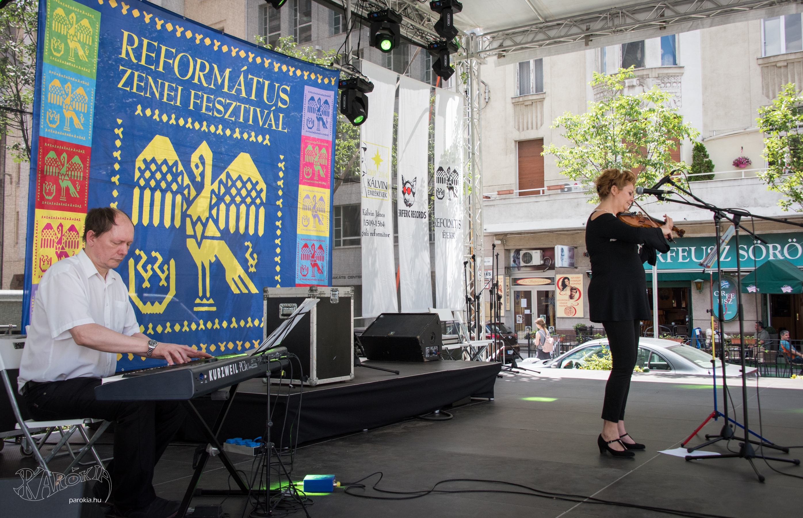 Valóban, gyakran úgy történik az érkezés, ahogy mondja. Talán nem tűnik túlzott széplelkűségnek, de erre szükségünk is van. Ezáltal nevelődünk és tanulunk alázatot. Eddig minden esztendőben meghívást kaptunk a Református Zenei Fesztiválra, de hol a templomban, hol a díszteremben koncerteztünk. Ez volt az első alkalom, hogy szabadtéren játszottunk. Tudtam, hogy ez más lesz, mint a korábbi alkalmak, hiszen itt az emberek járkálnak, beszélgetnek, eszegetnek, emiatt volt bennem egy kis drukk. Aztán átgondoltam a dolgot, és úgy voltam vele, hogy akármi történjék is a koncert közben, ha csak egy ember áll meg a Bakáts téren, hogy hallgasson minket, akkor annak az egynek fogok a legjobb tudásom szerint és szívből játszani.