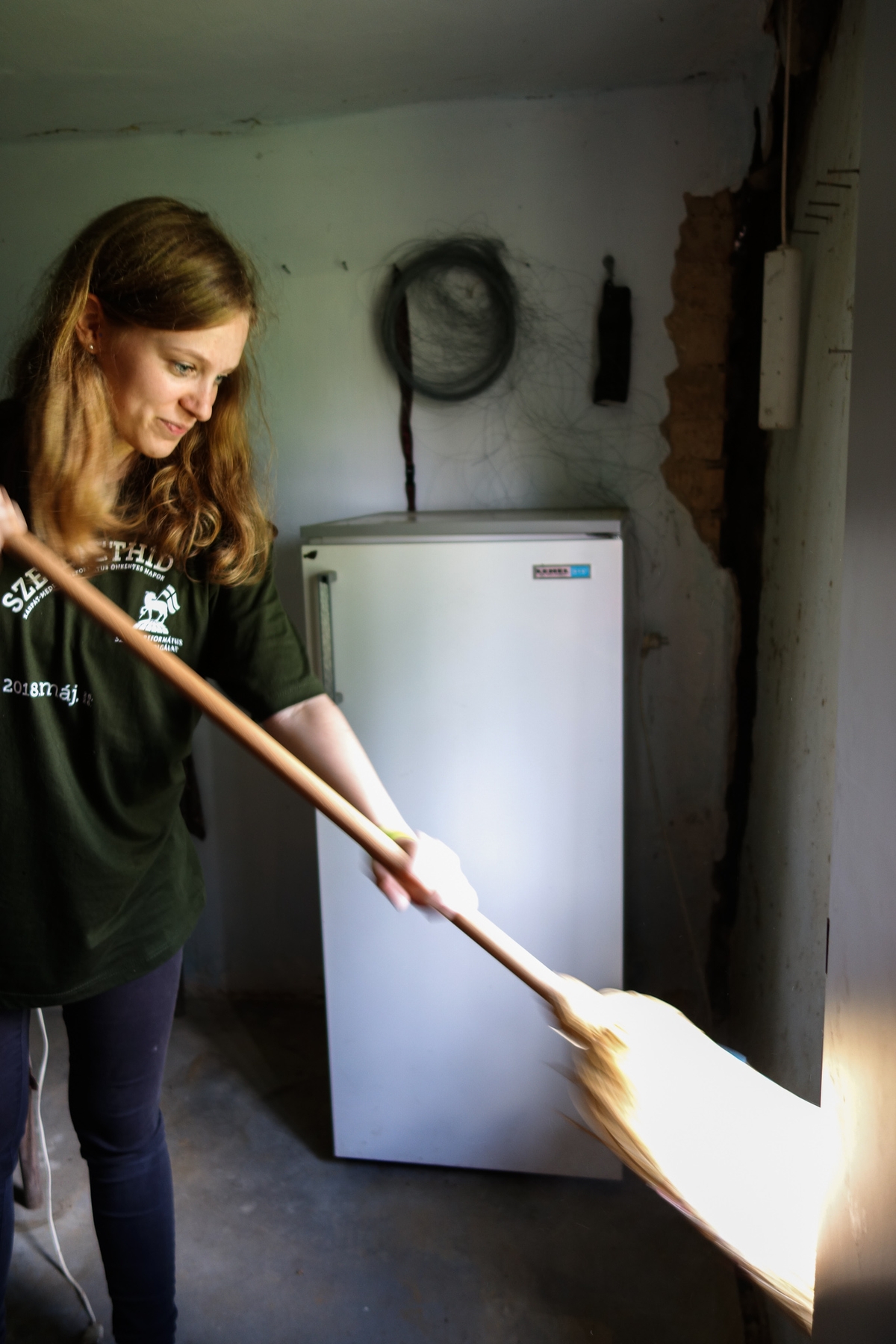 Volt, aki fűkaszát vagy éppen lapátot ragadott, hogy az udvari szemetet elszállítsa, mások a korhadt padlót kezdték felszedni a lakatlan öcsi parókia imatermében. Szanyi Ferenc apostagi lelkipásztor csaknem másfél évtizede jár a Művészetek Völgye előkészítő hétvégéire, ezúttal – már nem először – gyülekezete ifjúsági csoportjának néhány tagját is magával hozta. A középiskolások ötvenórás kötelező közösségi szolgálatukat gyülekezeti projektekben is elvégezhetik. Ám korántsem kényszerből jöttek: szívesen megfogják a munka végét, a lelkész el is büszkélkedik szorgalmukkal. „Épp tegnap építettünk fel a gyülekezetben egy szerszámtároló faházat, a fiúk ásták ki az alapot, betonoztak, térköveztek, felépítették a falakat, tető alá hozták az épületet. Füvet és fát vágnak a gyülekezetben, ha kell. Szeretném, ha ezek a fiatalok beépülnének a gyülekezetbe, és úgy tudtuk őket összeszedni, hogy munkát adtunk nekik, hasznosnak érzik magukat. De fontosnak tartottam, hogy ne csak a saját környezetünket tartsuk rendben, nyáron viszem őket Erdélybe is, ahova rendszeresen küldünk adományokat. Öcs és az itteni református közösség pedig a szívem csücske, ezért vagyunk itt.”