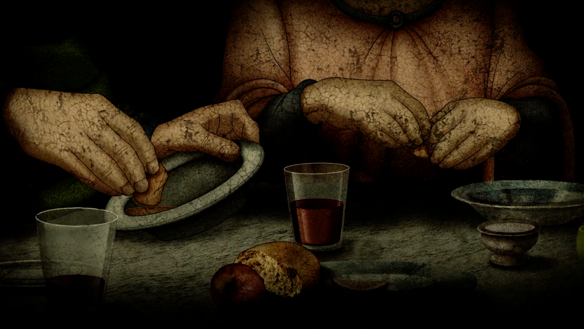 Békési Sándor az animációs film munkálataiba is bevonja a nézőt. Mint írja, első feladata volt az utolsó vacsora eseményének szétszórt dialógusait összegyűjteni és kiemelni az evangéliumokból, valamint Pál apostol leveléből. Mindezt a Károli-fordítás alapján tette, „hogy a 15. századvégi festményhez simuló szavaknak is legyen patinája. Így a film szívét képező eucharisztia a református szertartás szerint hangzik el, míg a kenyeret és a kelyhet felmutató Jézus mozdulatait a római katolikus képi hagyomány alapján terveztem meg a képes forgatókönyvben. A film zeneszerzője, Pacsay Attila pedig olyan szívbemarkoló zenei szövetet komponált, amelyben az ószövetségi főpap sófárjának és az újszövetségi pásztor szürinxének (pánsíp – a szerk.) hangjai úgy ölelik át a zsidó és görög világot, mint a Biblia bőrkötése a két testamentumot. Már önmagában ez a muzsika is rendkívüli módon inspirálta a film kockáról kockára dolgozó munkatársait.”