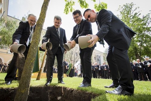 Református egységünk hálaadóünnepe faültetéssel kezdődött a Magyar Református Egyház Zsinatának május 17-i ülése előtt. A püspökök és a Kárpát-medencei egyházmegyék képviselői közösen ültettek el egy tölgyfát a Debreceni Református Kollégium díszudvarán, ezzel is kifejezve összetartozásunkat. A Magyar Református Egyház jelképévé vált fa egyszerre utal gyökereivel a történelmi múltra, amelyből kinő a törzs, és a folyóvíz mellé ültetett fa biblikus képére, amely képes gyümölcsöket teremni. A Kárpát-medence minden református egyházmegyéjéből hoztak a zsinatra érkező tagok egy-egy cserépnyi földet, amelyet mindnyájan a kollégium udvarán elhelyezett tölgyfára szórtak – így vált a szimbolikus faültetés egységről szóló üzenete még mélyebbé.