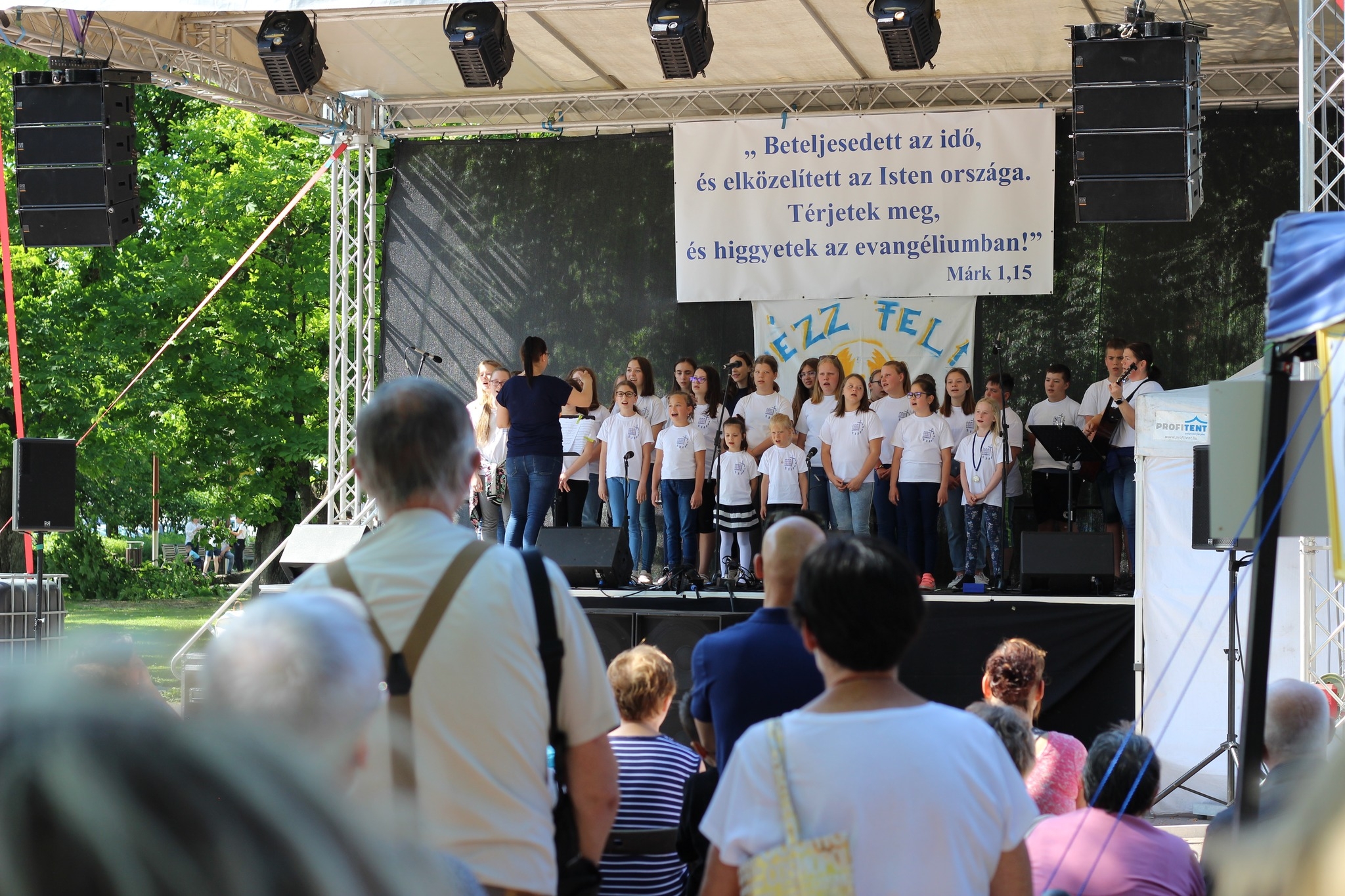 Ezt tettük mi is. Mindegyik közösség a „maga nyelvén” mondta el, hogy mit jelent neki Isten országa. Volt egy feszültségfelvezető sátor, ahová bárki bemehetett lelki beszélgetésre, sokan imádságot és áldást kértek életükre. Szinte egymásnak adták a „kilincset” azok, akik lelkileg is meghallották a biztatást, a nap szlogenjét: Nézz fel! A legelesettebb szegénytől a diplomás egészségügyi dolgozóig sokan nyertek erőt és reménységet az imádságok által az Úrtól. A hatvani Kékkereszt csoport közösségéből egy hölgy az alkoholtól való szabadulása örömében szólhatott a színpadon és kamera előtt is a szabadító Jézusról.