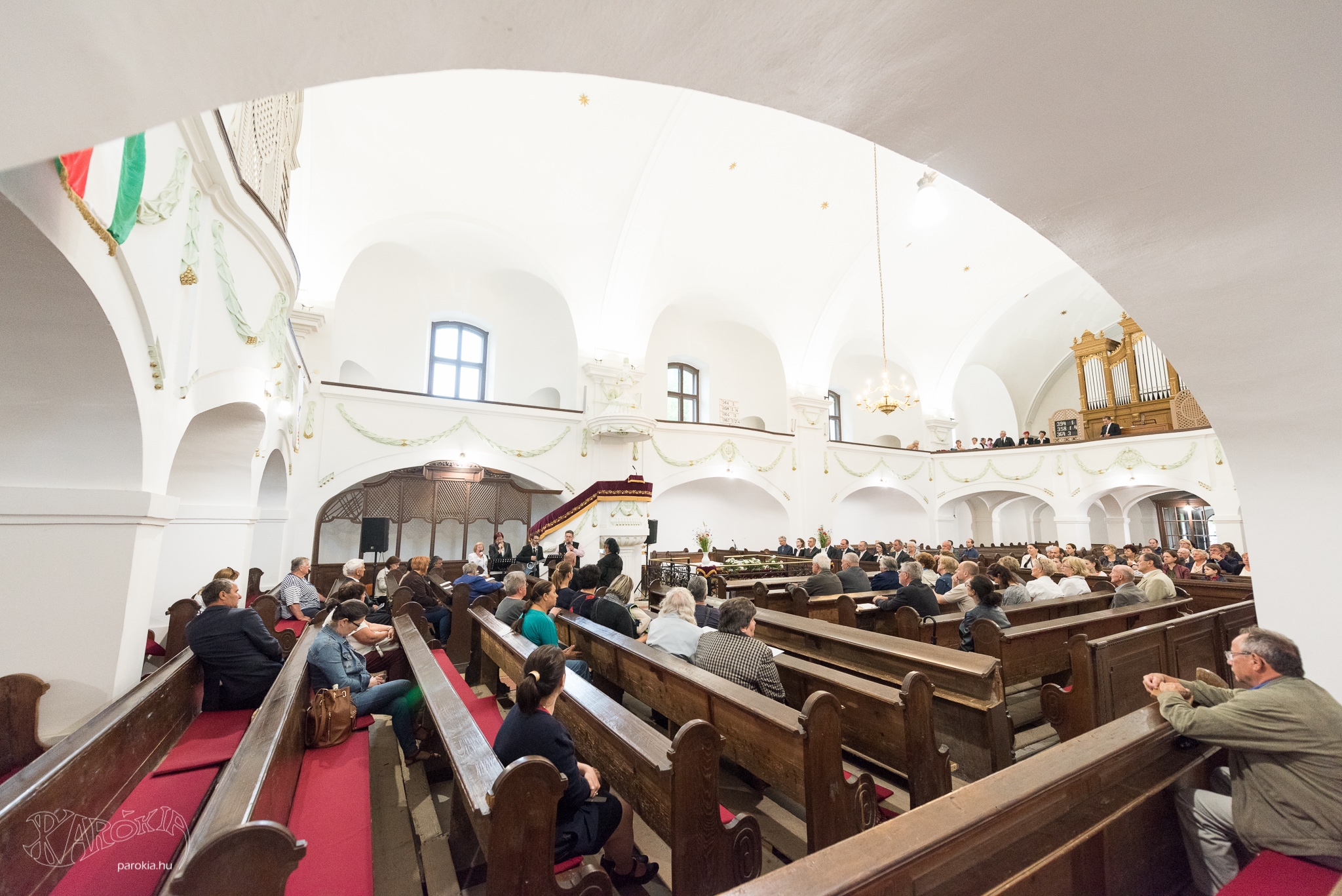 Az eső megint közbeszólt, s a szabadtérre tervezett ökumenikus imaalkalmat végül a református templom ódon falai között tartották meg, csak úgy, mint tavaly. A templom akusztikája még angyalibbá tette Mizsei Molli énekét, ugyanakkor a pünkösdi dicsőítő zenekart talán jobb lett volna a szabad ég alatt hallgatni. Ám énekük és zenéjük akár egy istentisztelet! Jó volt látni, ahogy az együttessel együtt énekelt némelyik lelkipásztor. A legmegrendítőbb az a pillanat volt, amikor a szószék előtt a különböző felekezetek lelkipásztorai egyszerre emelték fel kezüket áldásra. Az esemény főszervezőjét, Pintér Gyula református lelkipásztort kérdeztük, mi vezérelte, amikor elindította ezt a kezdeményezést.