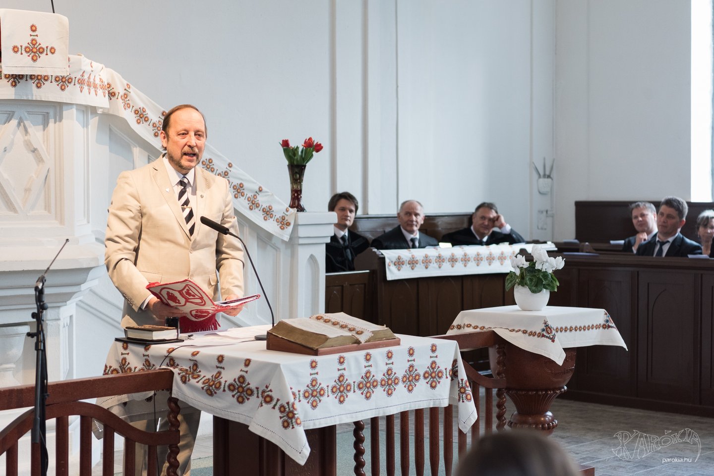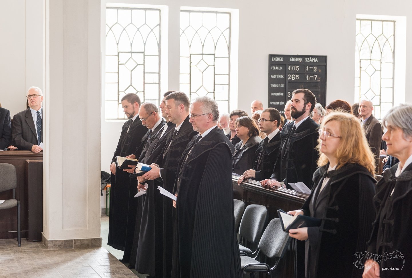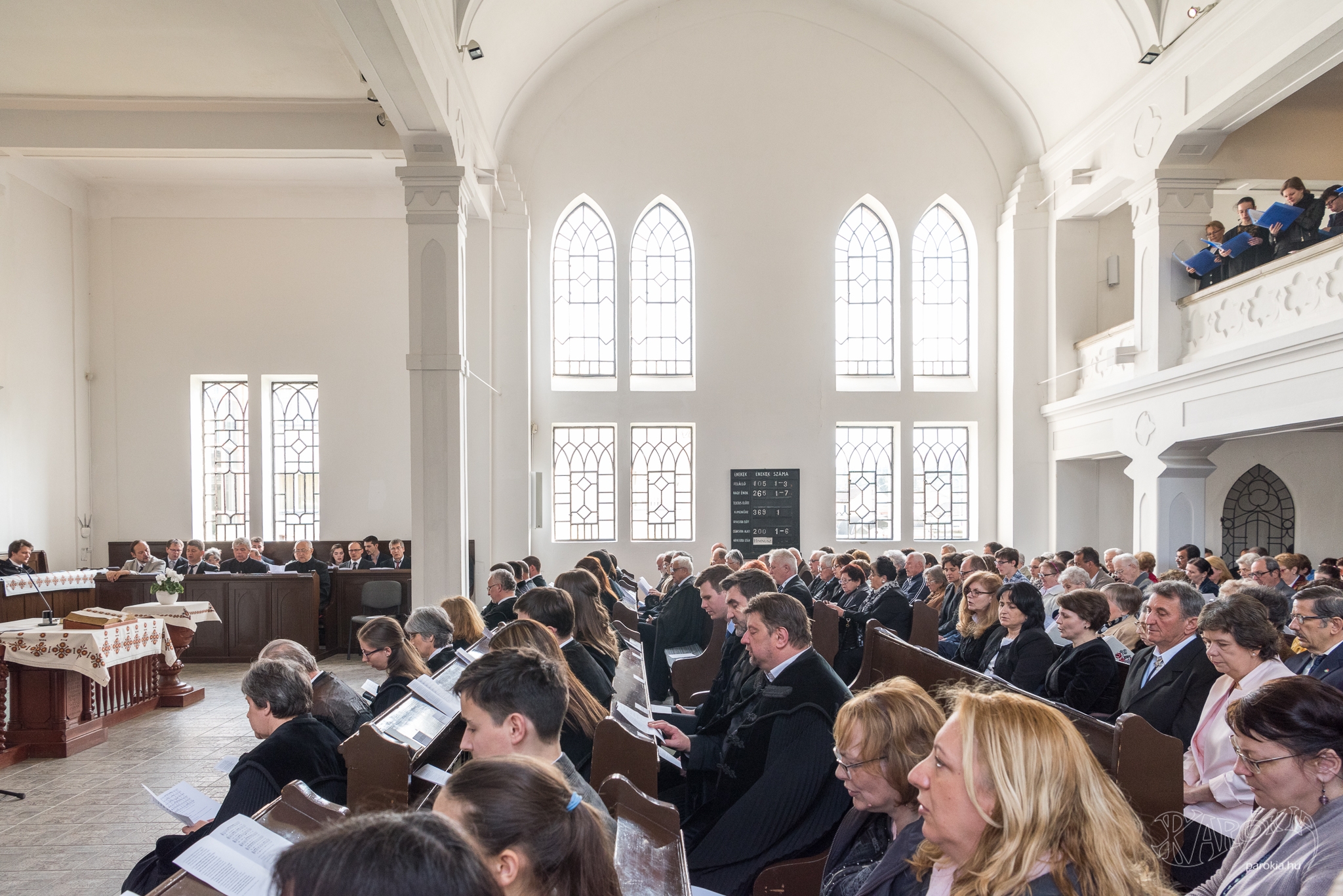 Az istentisztelet az énekkar szolgálatával és további köszöntésekkel folytatódott. A gyülekezet előző lelkésze, Nagy Péter a Zsoltárok