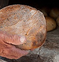 Józsi, a baranyai cigányok papja hívei által frissen sütött cipót tesz az úrasztalára...