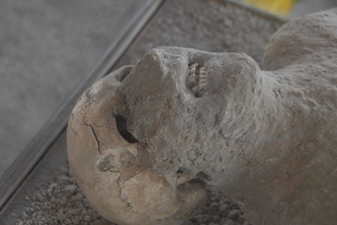 Ahogy beléptünk ezekbe az épületekbe, megrendítő felfedezéseket tettünk. Gipszszobrokat találtunk, amelyek valójában nem is szobrok, hanem lenyomatok – valóságos emberekről, jó kétezer éve élt pompejiekről. Volt, akit menekülés közben ért utol a halál, más fuldokolva zuhant a földre, és olyan is, aki egy helyiségben, zárt ajtó mögött várta sorsa beteljesedését.