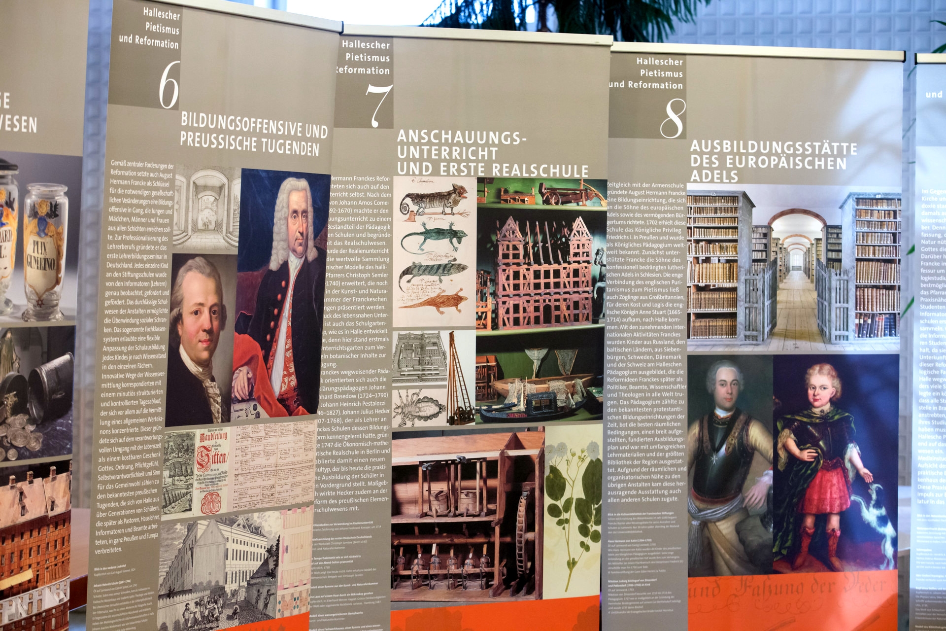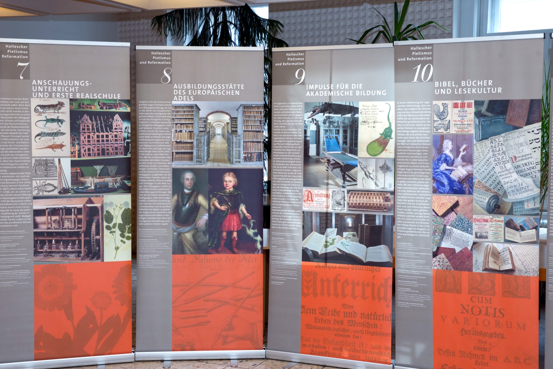 „A húsz tablóból álló sorozat a reformáció alapítójától, Martin Luthertől indul, és az ő örökségét próbálja bemutatni egy kétszáz évvel későbbi hallei mintán” – ismertette a vándorkiállítás magyarországi szervezője. „August Hermann Francke (1663–1727), a hallei pietizmus alapítója ugyanis komolyan úgy gondolta, Luther nyomdokain kell lépkedni. Mindaz, amit a reformátor megvalósított, az Francke szerint egy későbbi, 18. századi környezetben is minden további nélkül megvalósítható, sőt, elmélyíthető. Ezt a folyamatot mutatja be a tablók sora Francke személyétől kezdve, az által létrehozott egyes intézményeken keresztül az európai, illetve az Európán kívüli kapcsolatrendszerig. A tablók megjelenítik azt is, hogy a Francke által még a 17. század végén létrehozott pietista örökséget hogyan ápolják mai is egy élő környezetben, és bizony ez példaértékű. Olyannyira, hogy a Franckesche Stiftungent, vagyis a Franckei Alapítványokat szeretnék beemelni az UNESCO világörökségi listájára.”