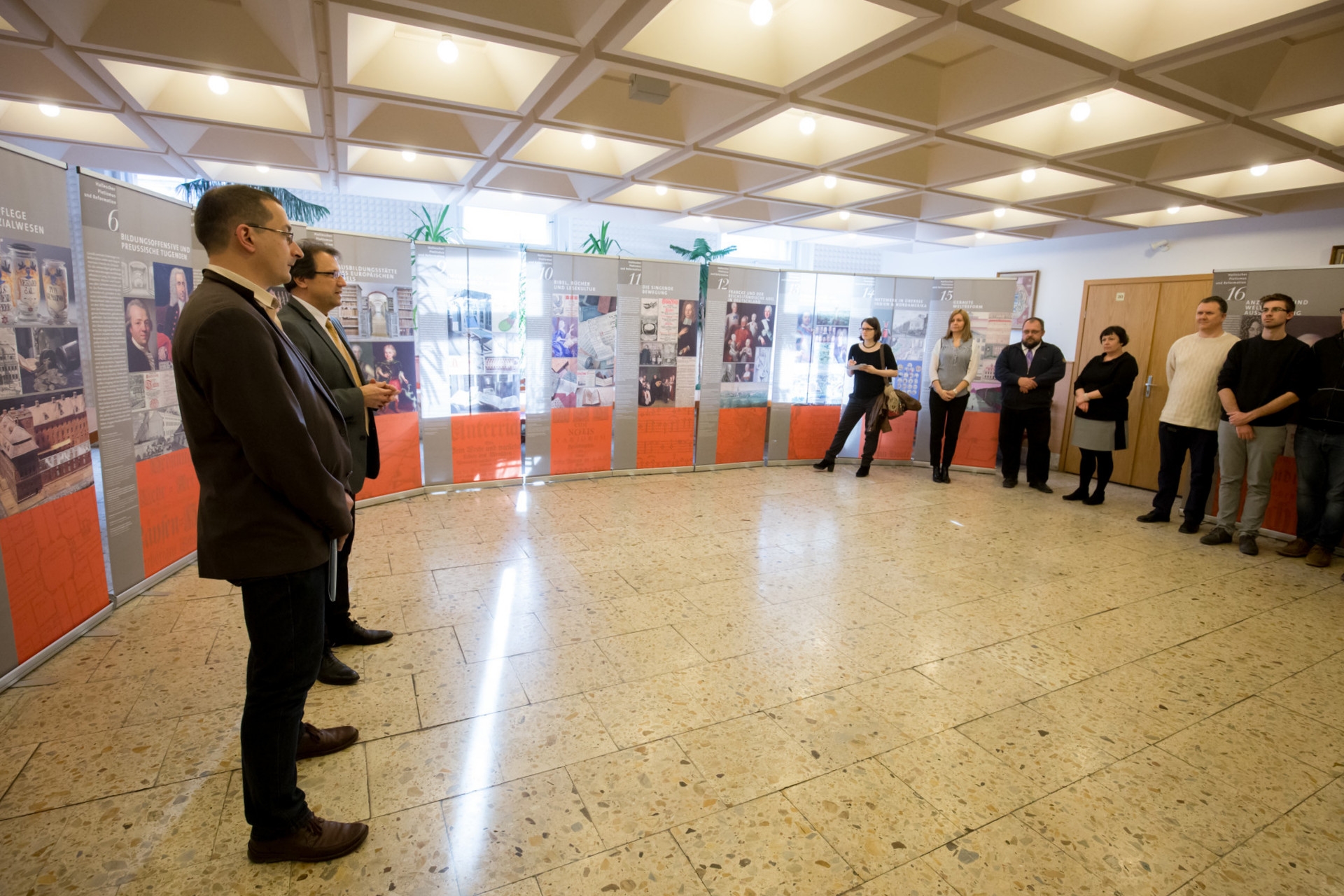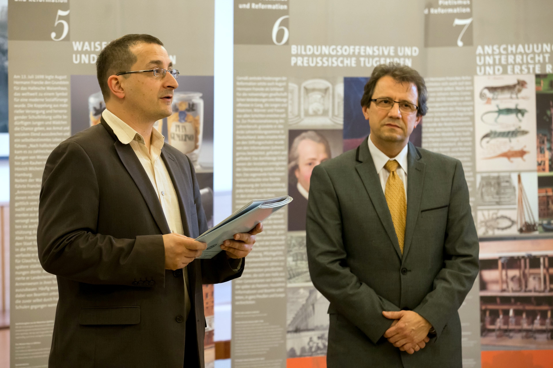 A megnyitón elhangzott az is, hogy a Franckesche Stiftungen és magyarországi tudományos intézmények között 2000-ben megkötött együttműködés jóvoltából az utóbbi másfél évtizedben a teljesség igényével sikerült feltárni a Franckei Alapítványok történeti gyűjteményeiben a hungarica-, azaz a Kárpát-medencére vonatkozó kora újkori, tehát az 1800 előtti időkből származó anyagokat. Verók Attila idézte Franckesche Stiftungen igazgatóját, aki szerint a kevés számú magyar kutató ezzel értékes és hiánypótló munkát végzett, melynek nyomán immár jól dokumentálható a hallei–magyar szellemi kapcsolatok története. „A hungarica-feltárás első publikált eredményét a Franckei Alapítványok közel 13 ezer darabot számláló portrégyűjteményéből kikerülő magyar ábrázolásokból összeállított katalógus jelentette még 2003-ban. Hat évvel később, 2009-ben ezt a kötetet követte a magyar vonatkozású történeti térképeket és látképeket magában foglaló színes katalógus megjelenése. A Stiftungen levéltárában őrzött magyarországi szerzők leveleit és kéziratait tartalmazó katalógus 2015 karácsonyán látott napvilágot, és megjelenés előtt áll az Alapítványok hatalmas történeti könyvtárában elrejtve meglapuló több ezer magyar vonatkozású régi nyomtatványt bemutató többkötetes katalógus is.”