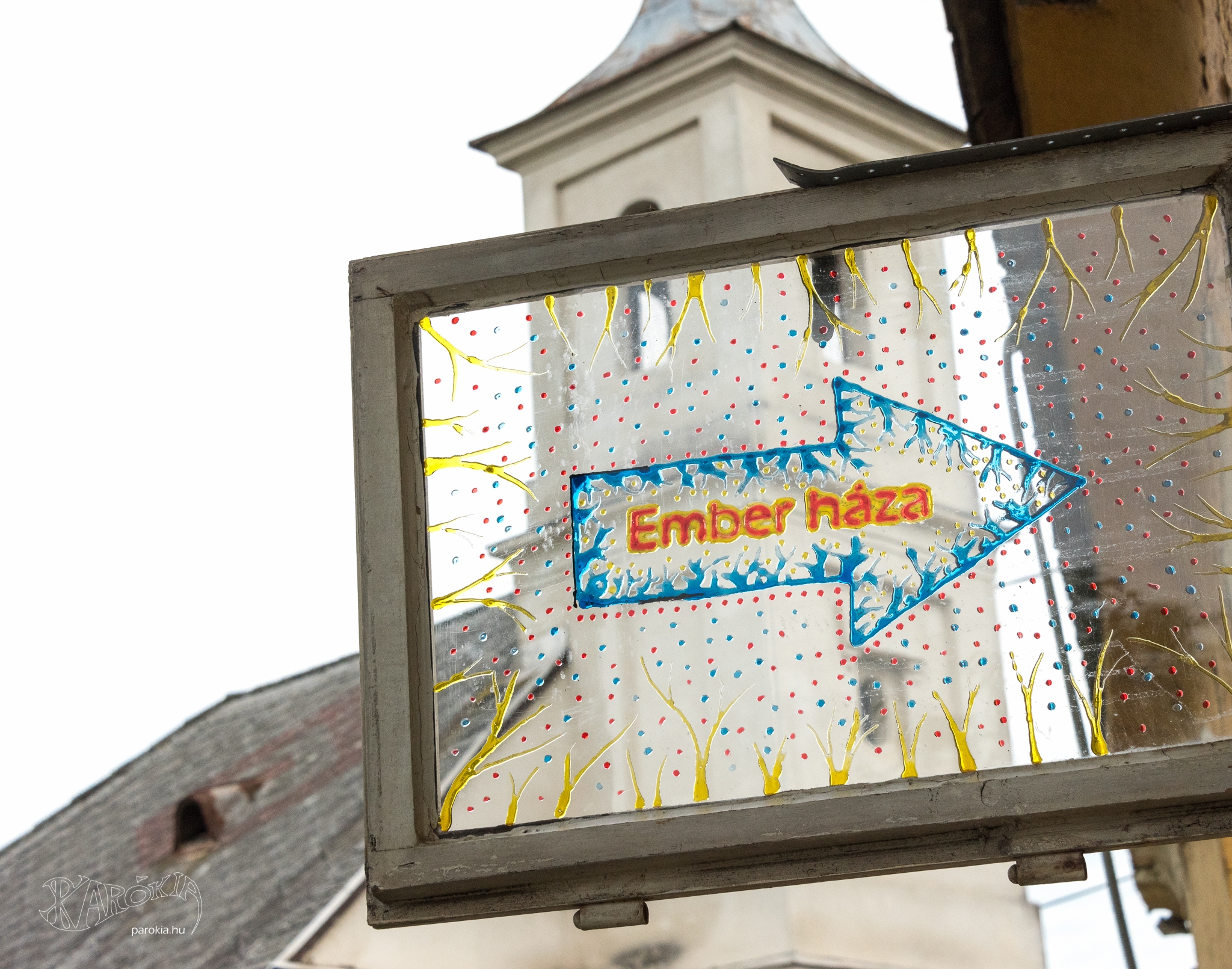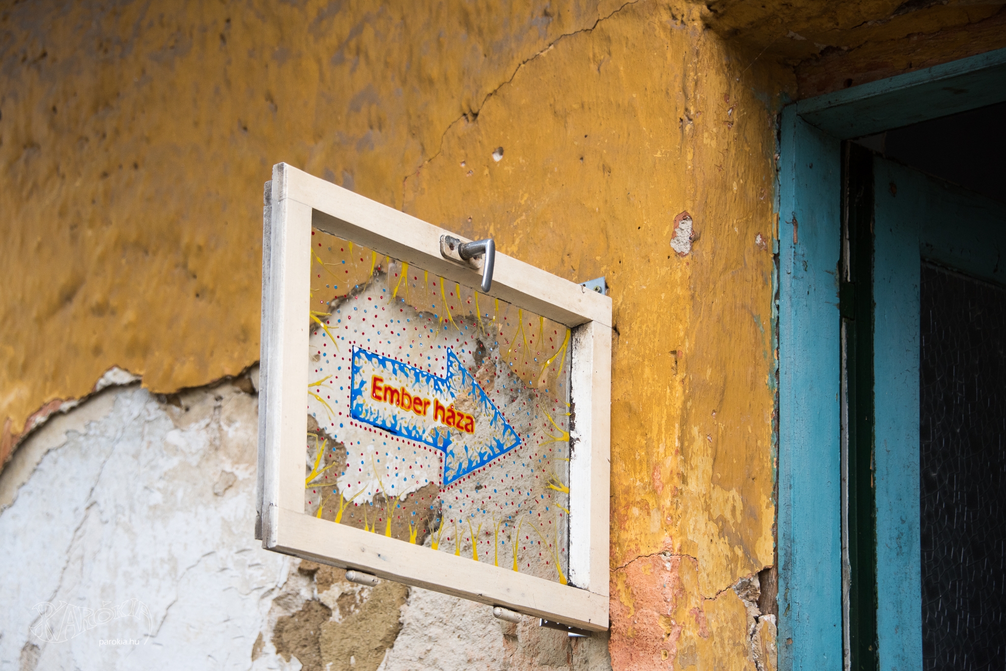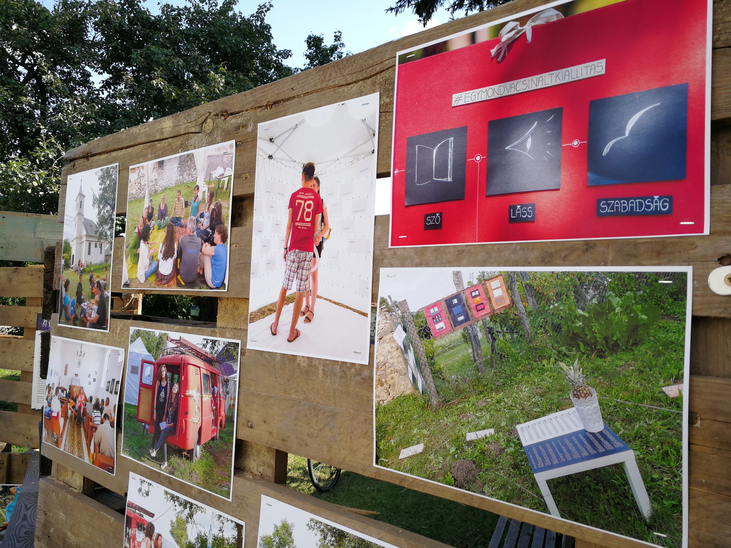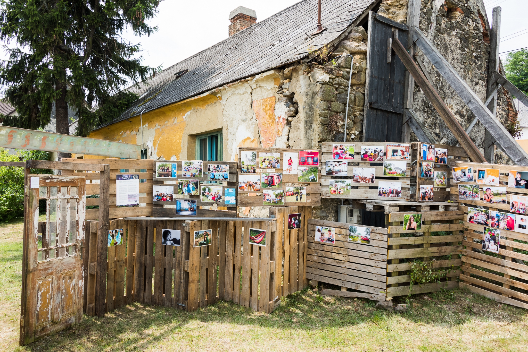 Az idei Művészetek Völgye ideje alatt már nem mehetünk be a kántortanító házába. „Kerítés védi” a látogatókat az épülettől, a „védőfalat” raklapokból, tavalyról megmaradt tárgyakból építették, és fényképekkel díszítették fel. A képeken személyek, portrék, az Udvarban szolgálók és dolgozók arcképei láthatók - a múlt lenyomata a jelen „átmeneti állapotán”. Az Ember háza számomra Krisztusra hívta fel a figyelmet, aki az egyetlen gyógyír a bennünk tátongó sebekre.
