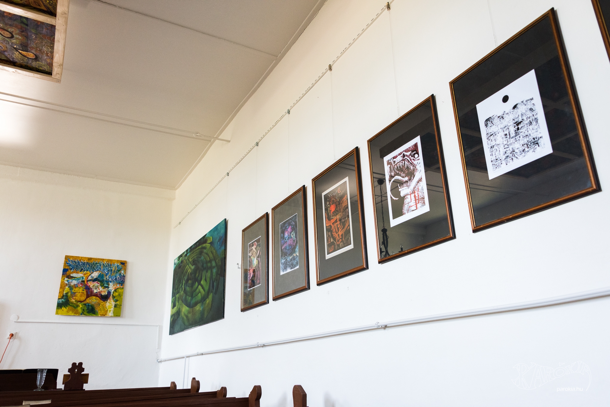 A református templomban a Pápai Református Kollégium Művészeti Szakgimnáziumának kiállítását néztem meg, amelynek Mesterek és tanítványok a címe. Nagyon szoros összefüggéseket kerestem a mesterek és a tanítványok képei között, már-már görcsösen. Ha van mester, akkor a tanítványa nagyon hasonlít rá, szinte eggyé válik vele – gondoltam. Belső konfliktusom oka az volt, hogy a krisztusi parancs kattogott a fejemben: tanuljátok meg tőlem, hogy... - és folytatásként saját magáról beszél a Megváltó. Úgy éreztem, nem lehetek különböző a mesteremtől, Krisztustól, de egyúttal teljesen másnak kell lennem a feletteseimhez képest. Saját identitásomat akartam erőszakosan megszilárdítani.