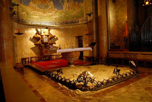 Jézus sírja, melyet Arimátiai József vágatott magának a domb keleti lejtőjén, két fülkéből álló sziklabarlang.