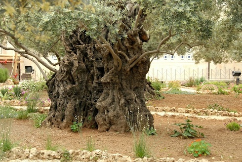 A mediterrán éghajlaton sarjadó növények között uralkodnak az elhalt maradványaikat magukba záró, göcsörtös fák, fény felé törekvő ágaikkal. Több száz évesek is lehetnek köztük, sokan úgy képzelik, Jézus korabeliek is. Az Olajfák hegyén járunk.