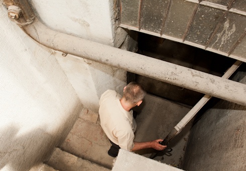 A felszínről a mélybe megyünk, a rejtelmek világába. A nehéz vaskapu fémesen csattan mögöttünk, dohos levegő csap meg. A teológia pincéje most is zegzugos és sötét, nem sokat változhatott az évtizedek alatt. A püspök magabiztosan vezet végig a folyosókon, majd büszkén mutat körbe egy poros helyiségben.