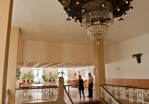 A püspöki hivatalba térve arról mesél Szabó István, hogy az minimális apparátussal működött. A hátsó szobák egyikében több mint tíz évig lakott Ravasz László püspök, aki Erdélyből jött át Magyarországra.