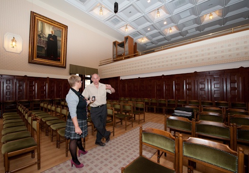 A díszteremben tabuhelyek kerülnek szóba. A nagy fal mögött egy titkos ajtó bújik meg és egy lépcsősor kanyarog, amelyről kevesen tudnak.
