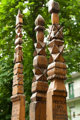 A sport után hamar komoly témára terelődik a szó, amikor nemzeti színű szalagokkal díszített kopjafák mellé érünk az udvaron.