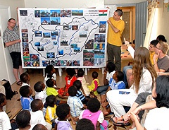 Ezután bemutatom nekik az országunkat. Próbálom interaktívvá tenni ezeket a perceket. Olyan kérdéseket teszek fel nekik, mint például tudják-e, hogy melyik földrészen van Magyarország. Ekkor egy kicsit megszeppennek szegénykék, így rákérdezek, hogy vajon Afrikában van-e. Néma, kínos csönd…