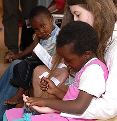 Ülünk egy nagyjából 15 nm-es szobában, tizenhatan mi magyarok, vagy húsz afrikai HIV-pozitív kisgyerek, és még néhány felnőtt. Dél körül jár az idő, fullasztó meleg van. A kicsik a földön egy kupacba tömörülnek, mi pedig körülöttük a székeken, fotelokban ülünk, kinek éppen mi jutott. Az egyik kislány előttem ül törökülésben a földön, rózsaszín kis ruhácskában. Néha óvatosan fel-felnéz rám, elmosolyodik, én visszamosolygok rá, míg ő közben a poros lábfejemet simogatja. Ő ugyanaz a kislány, aki kézenfogva vezetett be ebbe a kis szobába. Szavak nélkül is valami különös, megmagyarázhatatlan kapcsolat alakult ki közöttünk onnantól kezdve, hogy megérkeztünk Tumainibe, az AIDS-es árvaházba.