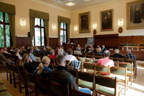 A PRÚSZ nyitott műhelybeszélgetését a Dunamelléki Református Egyházkerület székházában tartották. Mintha hazajött volna, ahogy a környéken sétált, mondta Novotny Zoltán sportriporter, a protestáns újságírószövetség elnöke. Édesapjának ugyanis műhelye volt a Ráday utcában, és bár ő maga evangélikus, első iskolás éveit a Lónyay Utcai Református Gimnáziumban végezte. A Református Zenei Fesztivál egyik fő helyszíne, a Bakáts tér pedig a lábteniszhez, a fejeléshez és a labdarúgáshoz biztosított terepet gyermekkorában neki és barátainak.