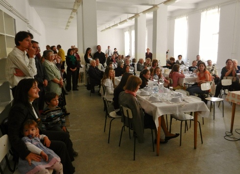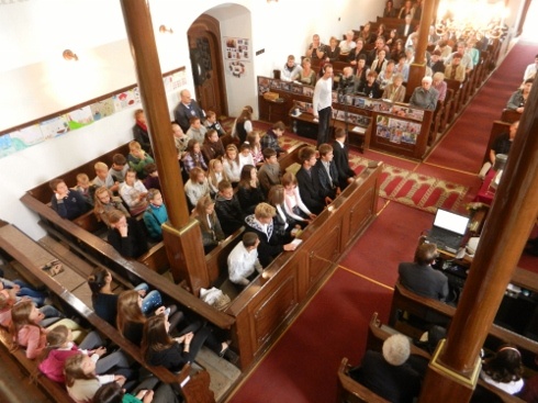 Hamarosan gyerekekkel telnek meg az Úr asztalával szemközti padsorok, és aktív közreműködésükkel elkezdődik a tanévnyitó istentisztelet. Ők köszöntik a gyülekezetet, igeverseket olvasnak fel, egyikük bátor önként jelentkezőként egy bizalomjátékban is részt vesz. „Aki nem kockáztat, az nem is nyer" – ez volt a nyári gyülekezeti tábor jelmondata. A táborról az istentiszteletet követő ebéden számolnak be, ahol több mint százan, fiatalok és idősek, házaspárok és családok ülik körbe az asztalokat. Családias hangulatú órákat töltenek együtt, végre hosszabban beszélgethetnek a rég nem látott ismerősökkel is. A paksi gyülekezetben úgy negyedévente rendeznek ilyen ebédeket, ezúttal is az egyik bibliakör tagjai szolgálnak fel, és két fiatal is fellép, akik rap-produkciójukkal idézik fel a tábori hangulatot.