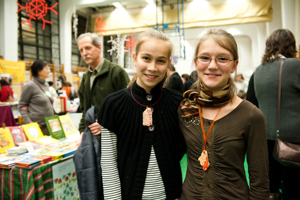 A kézműves stand körül a vásár legfiatalabb olvasói is segédkeznek.
