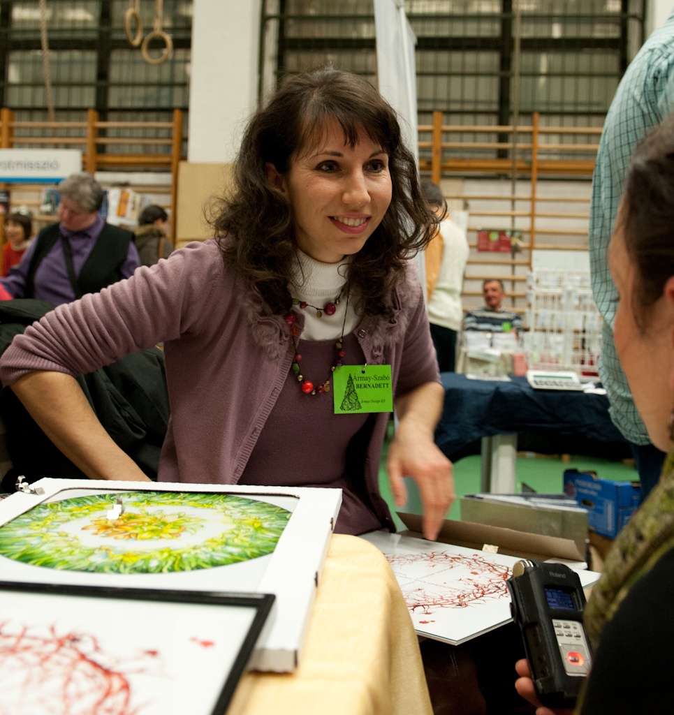Iratterjesztéssel foglalkozik Bodai Vera is, aki családi vállalkozása termékeit hozta el a könyvvásárra. A kerámia dísztárgyakat ő, a textil mobiltelefon-tartókat pedig a lánya készíti.
