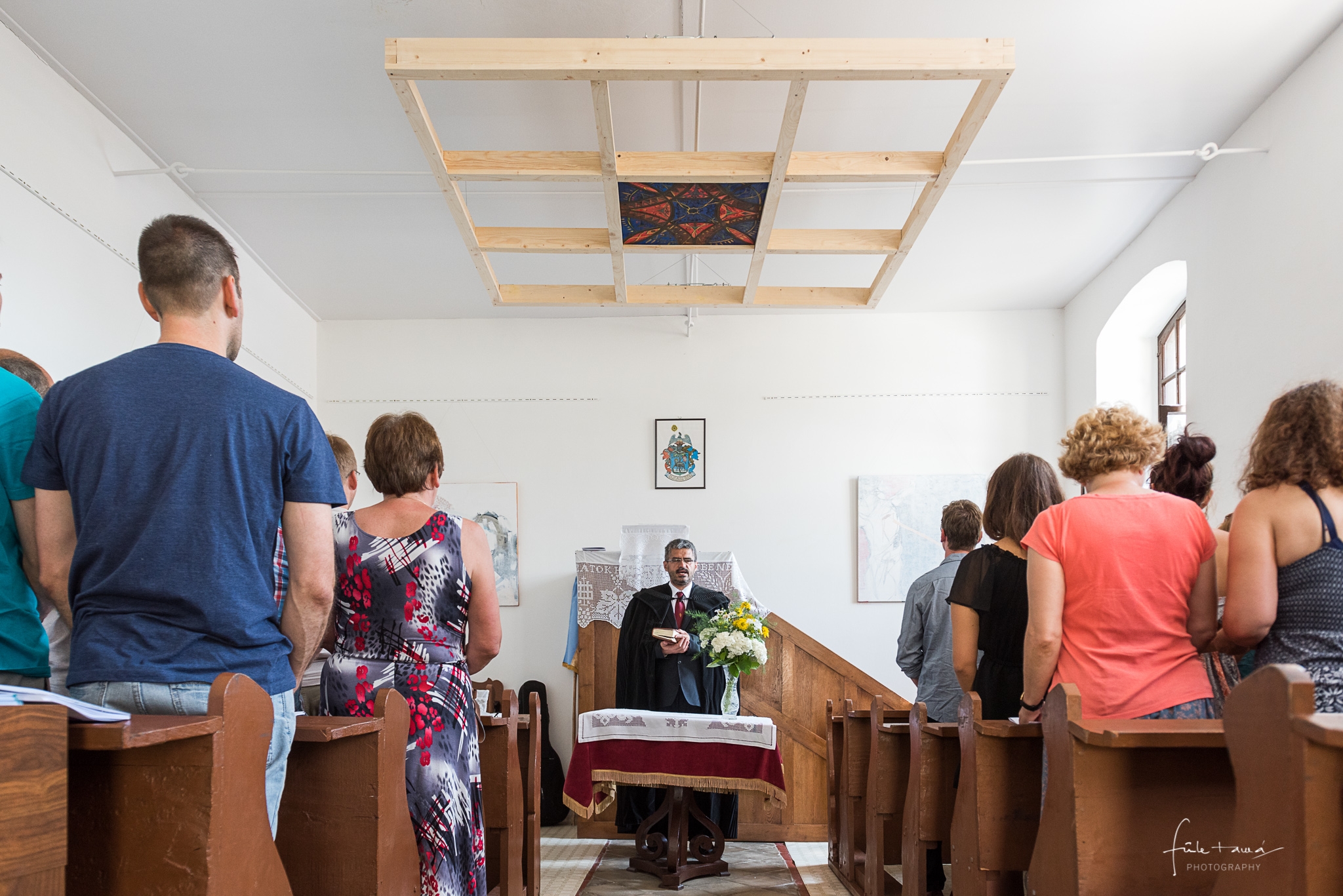 Felesége a tisztaságot, az egyszerűséget, a logikus rendet említi, amikor arról beszél, mit szeret reformátusságában. Mintha csak a fehérre meszelt taliándörögdi kis templomtérről beszélne, amely falaival hirdeti az Isten-ember kapcsolat mindenki számára elérhető, idővel mégis teljes megadásra késztető valóságát. Ezeken a falakon azonban megidéződik az is, milyen pusztításra képes az ember. Erről már Votin Dóra festőművész mesél, aki Eltüntetett képek címmel hét evangéliumi jelenetet festett meg, majd minden képét fehér festékréteggel kente le, felidézve a reformáció korabeli képrombolást.