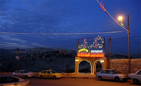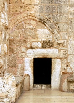 – A hagyomány szerint a török korban egy kalifa belovagolt a születés templomába, ezért a keresztyének befalazták az ajtó nagy részét, és csak egy szűk bejáratot hagytak, hogy többé ne fordulhasson elő hasonló eset.