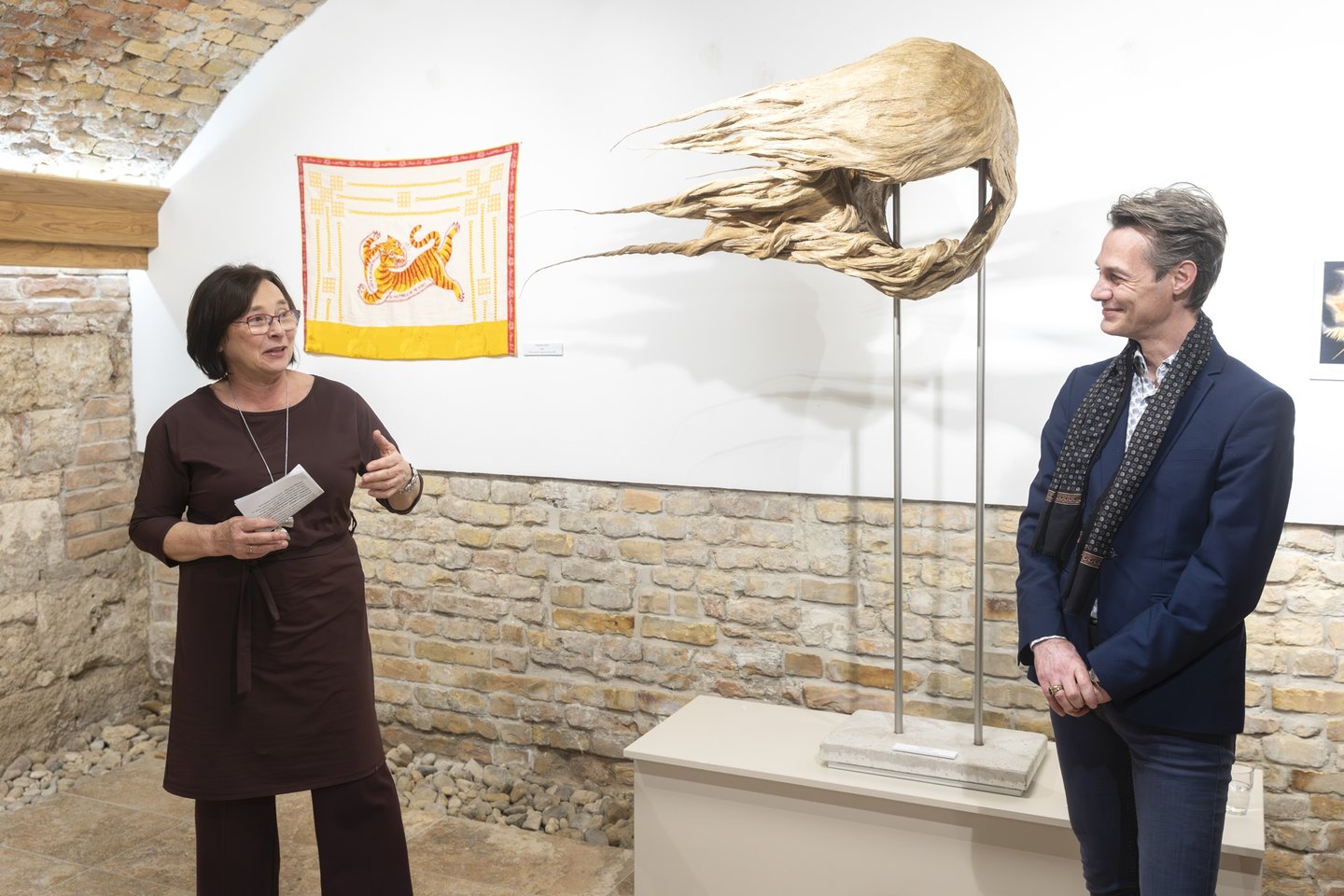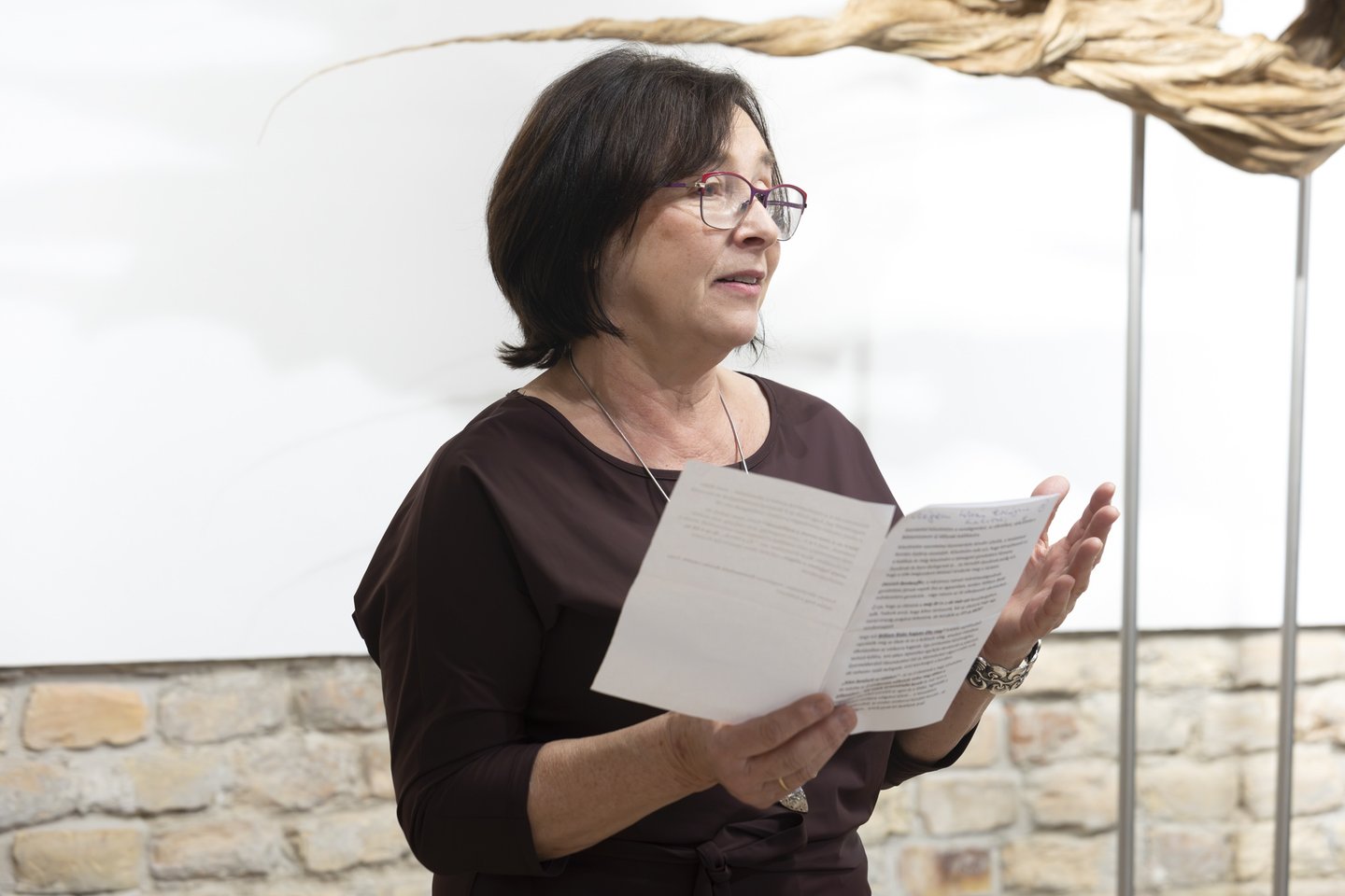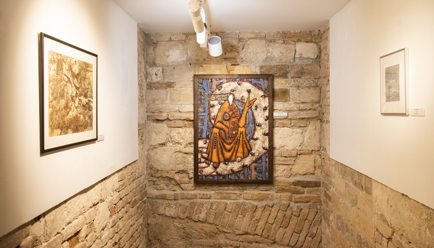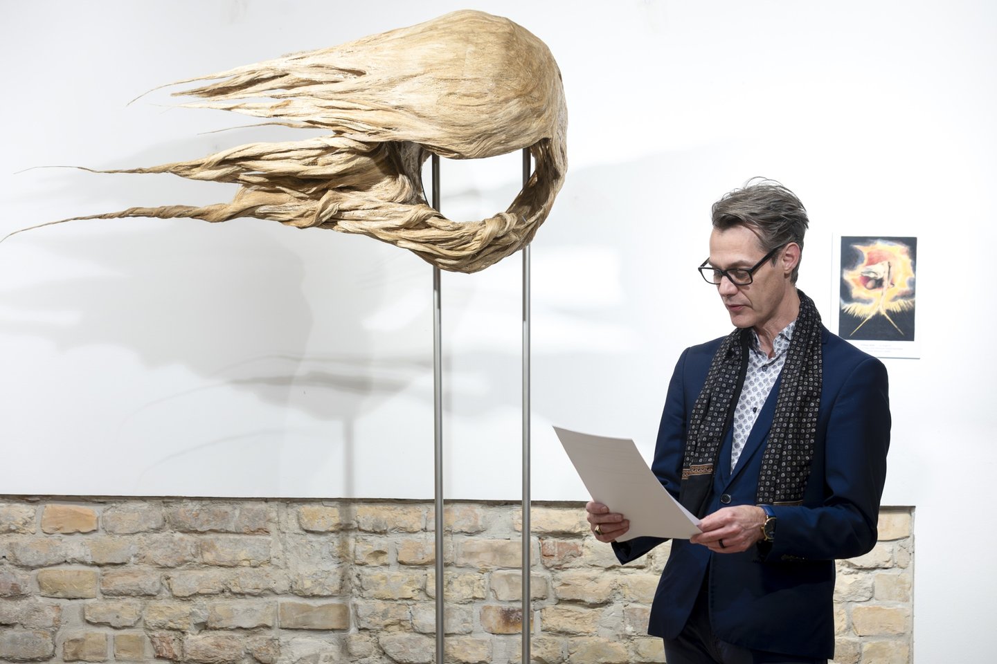 „Ő rendületlenül kereste a hidat a lélek, a hit és a való világ között, és meg is találta az összeköttetést az emberi lét szédítő mélységei és a magasság ragyogása között. Weöres Sándor – aki Blake-et is fordított – írja: Egyetlen ismeret van, a többi csak toldás:/ Alattad a föld, fölötted az ég, benned a létra. Ebbe a mi torzult világunkba emberként jött le hozzánk az Isten. Pál apostol szavai adták a kiállítás címét: sem magasság, sem mélység, sem semmi más teremtmény nem szakíthat el minket Isten szeretetétől, amely a mi Urunkban, Jézus Krisztusban van. (Róm 8:39) Ahogy Bonhoeffer írja, az életünk a még itt és a már ott feszültségében telik. Iránytűnk az isteni képmás voltunkban kapott lehetőségünk, hogy megláthatjuk a homokszemben a világot, még többet is.”