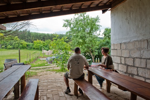 A közös munka igazi próbája sokkal inkább az, hogy társtulajdonosként egyeztessék elképzeléseiket egy-egy nagyobb beruházás esetén - árulja el László. Az egyébként háborítatlan csendet beszélgetésünk közben betonkeverő moraja töri meg, a pincével szemközt épp fedett kóstolóhelyiség épül a vendégek számára. Az üzemeltető családok igyekeznek minél harmonikusabban és hasznosabban bővíteni a pincét, amely nem véletlenül kapta a Zarándok nevet. Tartottak már itt lelkigyakorlatokat, közös imaalkalmat a pince felújítását fedező pályázatért, és sok betérő vendéget el tudtak hívni a keresztyén élet alapjaival megismertető tanfolyamra, a Cursillóra is.