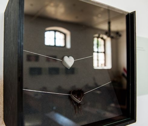 Azt gondolhatnánk, hogy a szeretet kifejezni leginkább csak szívecskékkel lehet, különösen, ha ékszerekről van szó. Azonban Lázs Eszter kiállításán csak egyetlen dobozban találunk szíveket, és azok sem szokványosak: ezüstláncon függő kőszív és egy szőrös szív.